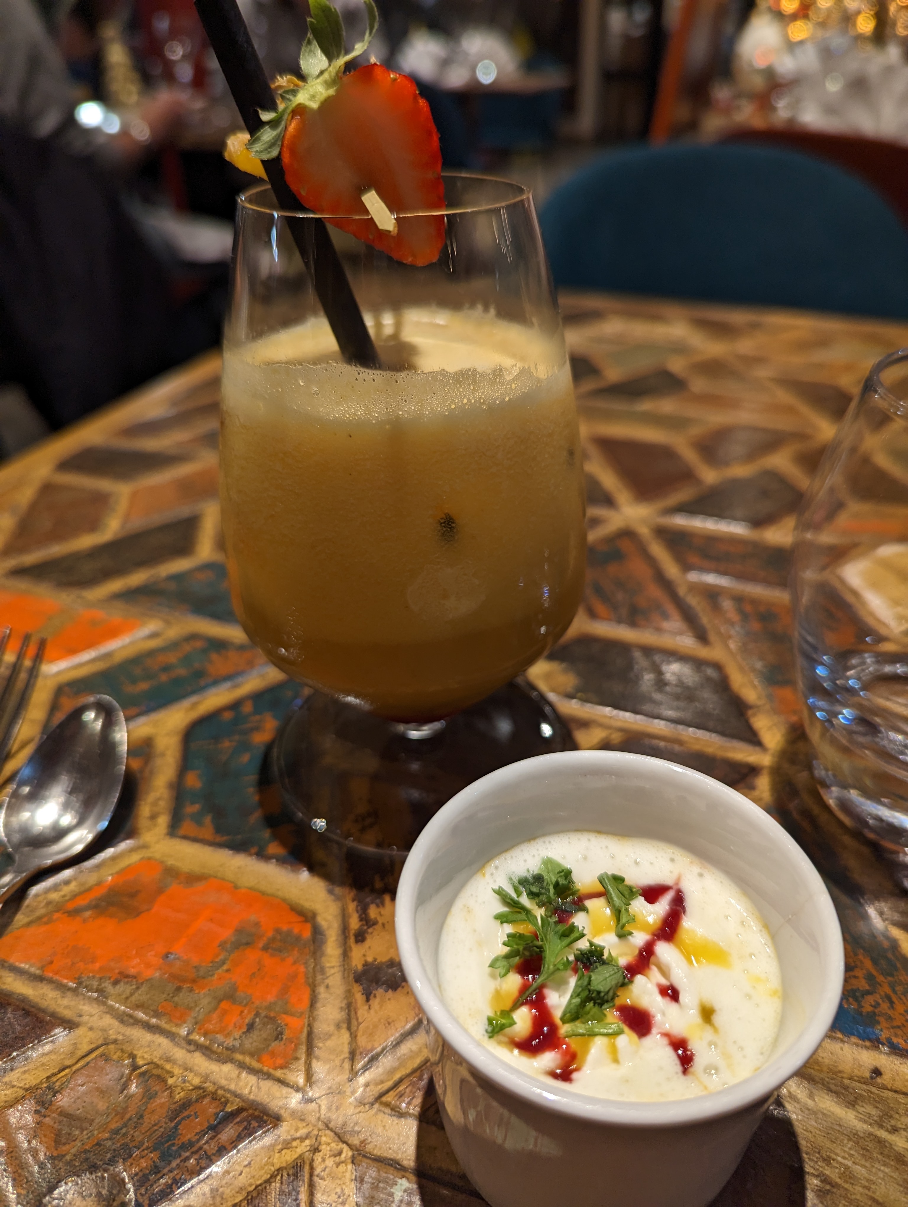 Déçue 😞 très mauvais rapport qualité/ prix : une part de lasagnes aux légumes à 25,50€ c’est abusé ! Les plats africains sont au départ alléchants mais dans le maffé bœuf j’ai cherché le bœuf dans la sauce et quand je l’ai enfin trouvé , les morceaux étaient de basse qualité , impossible à couper ou mastiquer , très dommage . On a apprécié la petite verrine “ offerte “ en attendant le plat et le style de la déco ( tableaux, ambiance calfeutrée je valide ) mais nous ne sommes pas venus à un vernissage mais nous sommes venus pour manger ! Sans trop se ruiner … dommage …