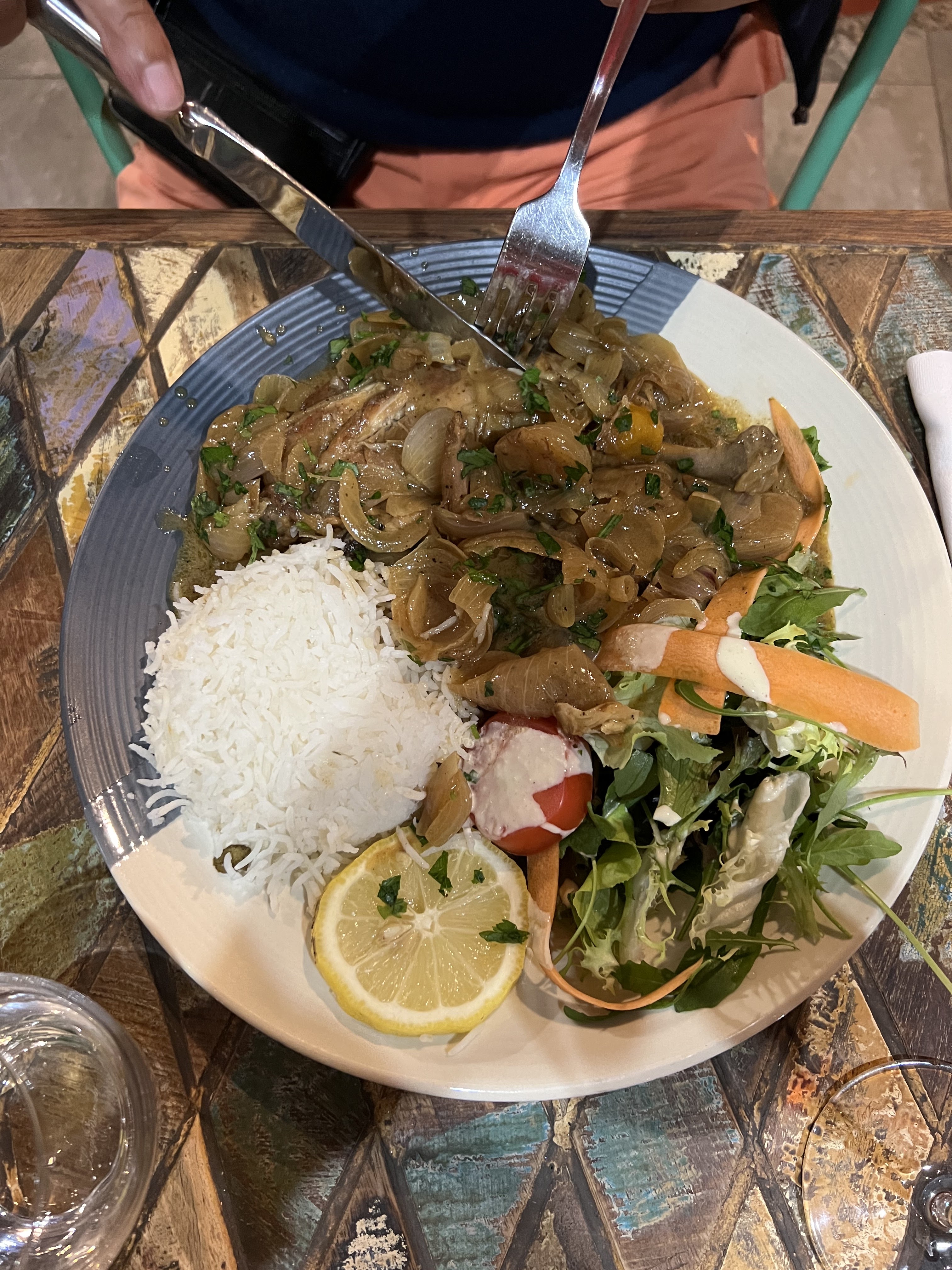 Nous avons pris des boulettes de poissons et un poulet yassa : juste excellent, tant au niveau des saveurs,de la quantité ,de l’accueil et service rapide ! Notre meilleur repas de tout notre séjour! Je recommande sans hésiter !