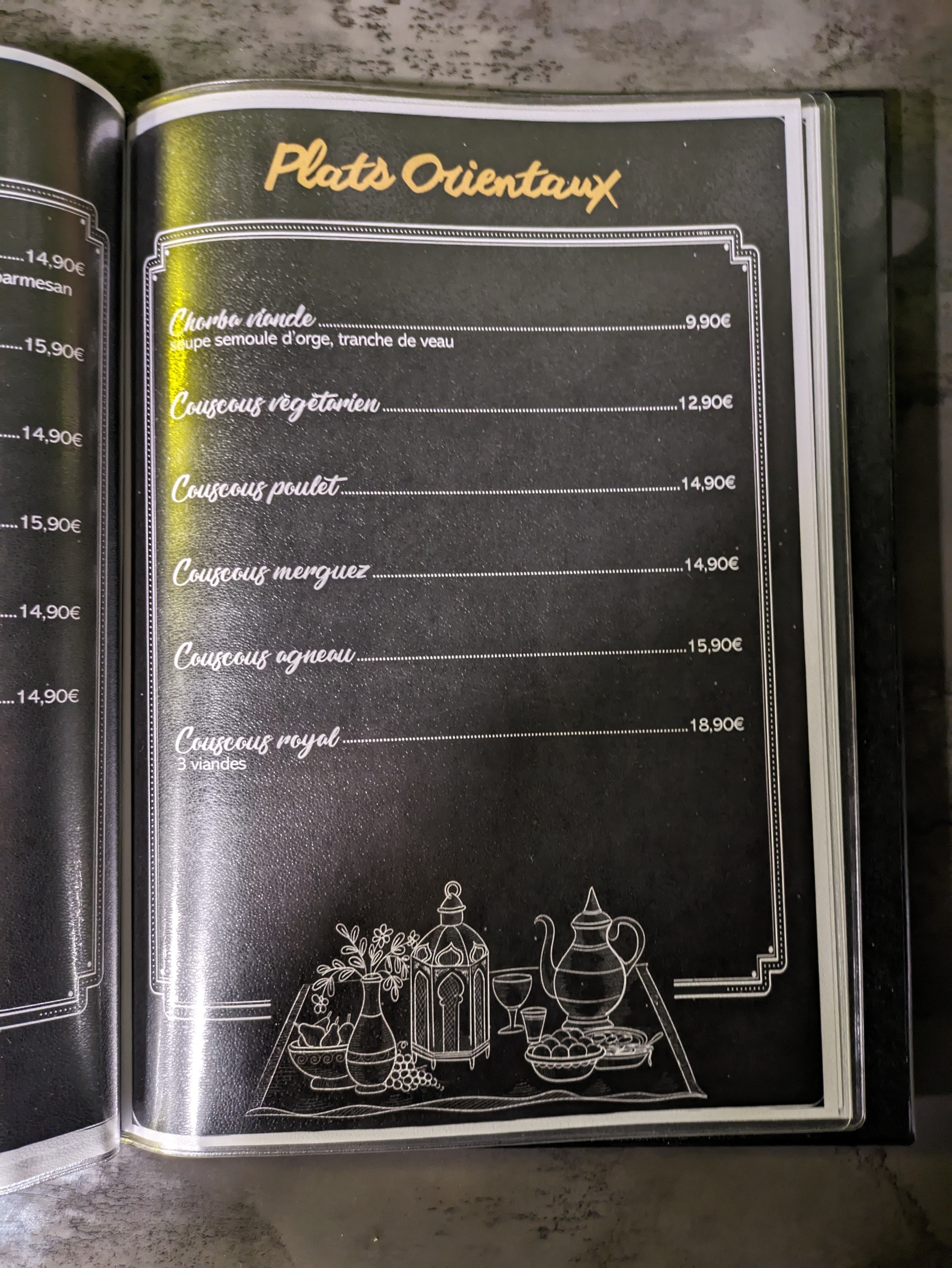 Ce restaurant a été une belle découverte à Villefranche. Accueil très chaleureux et ambiance conviviale. J'ai bien aimé la décoration type grotte qui ajoute une touche de dépaysement à l'atmosphère ! Le menu est bien garni. Je ne savais pas quoi choisir, alors j'ai opté pour un couscous royal aux trois viandes ! Et je n'ai franchement pas été déçu, la photo parle d'elle même. C'était très goûteux, bonne cuisson des viandes et des légumes, portions généreuses. Je recommande à 100% Merci à toute l'équipe 👍
