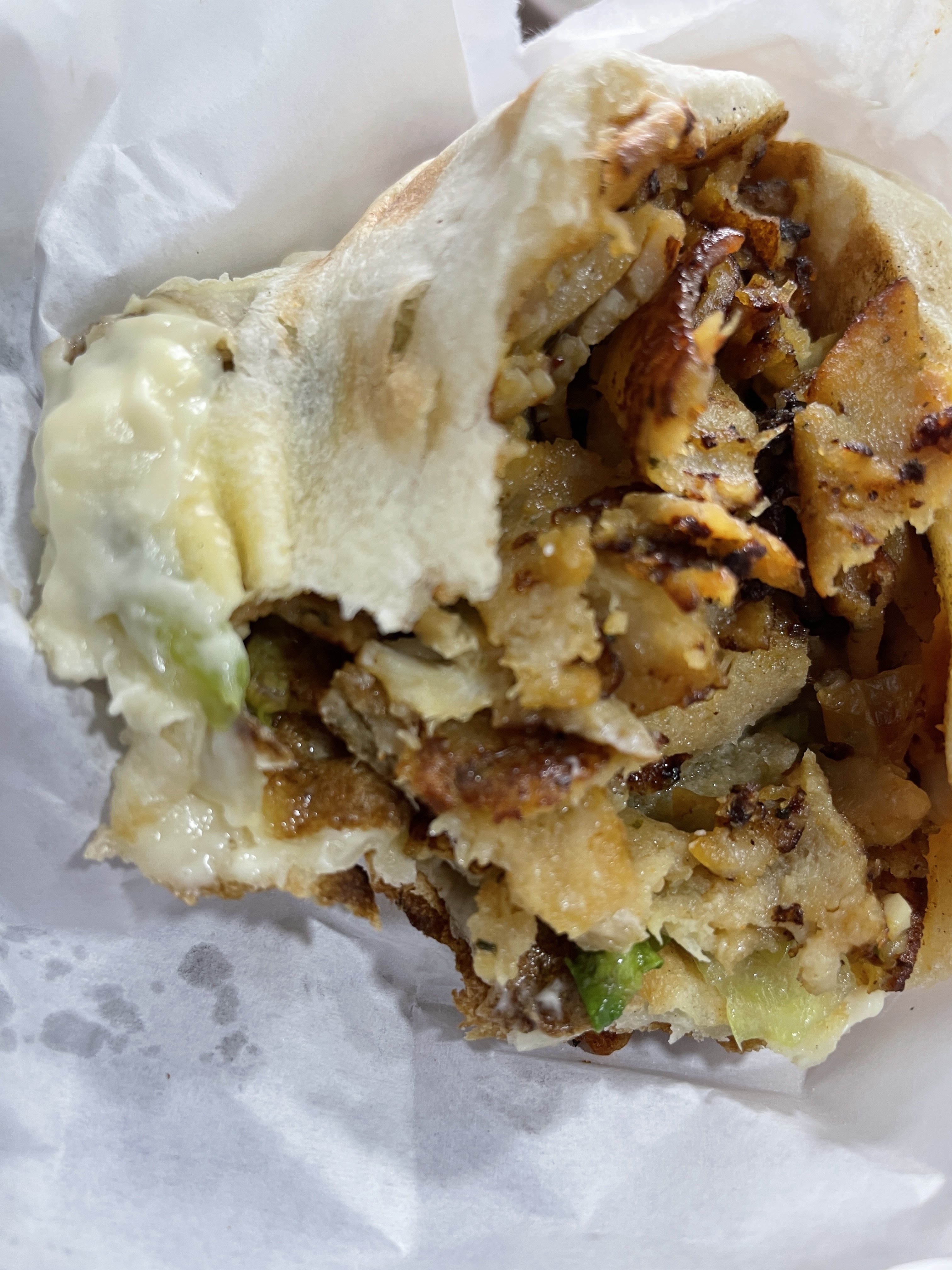 Petit sandwich de la taille d’une main, très petit. Sandwich kebab à 8 euros ne vaut pas le détour. Très sec j’ai pas senti la sauce. Je ne recommande pas !!