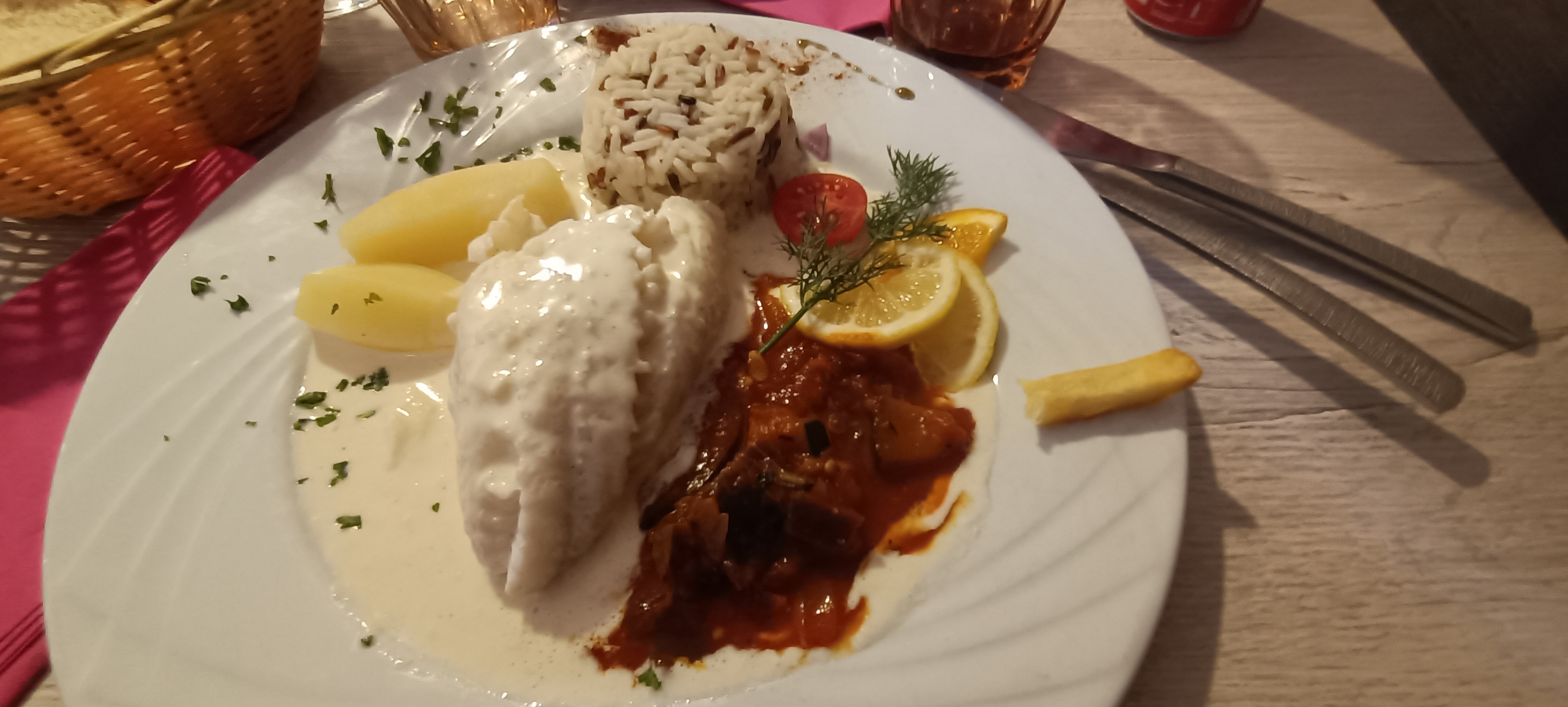 La raie était meilleure cette été la, la crème avait été rallongée nous étions pourtant en début de service 12h15 cafe liégeois avec 1 boule vanille le reste était correct