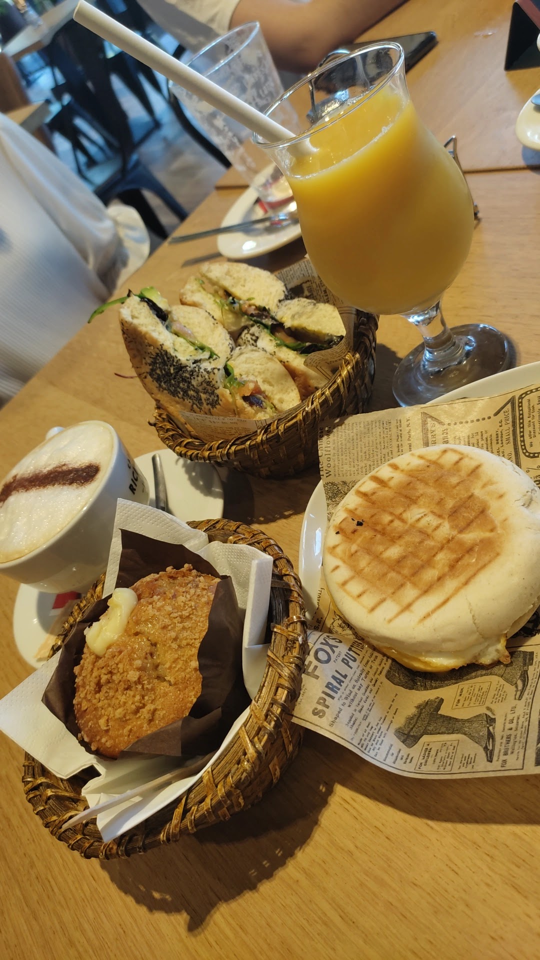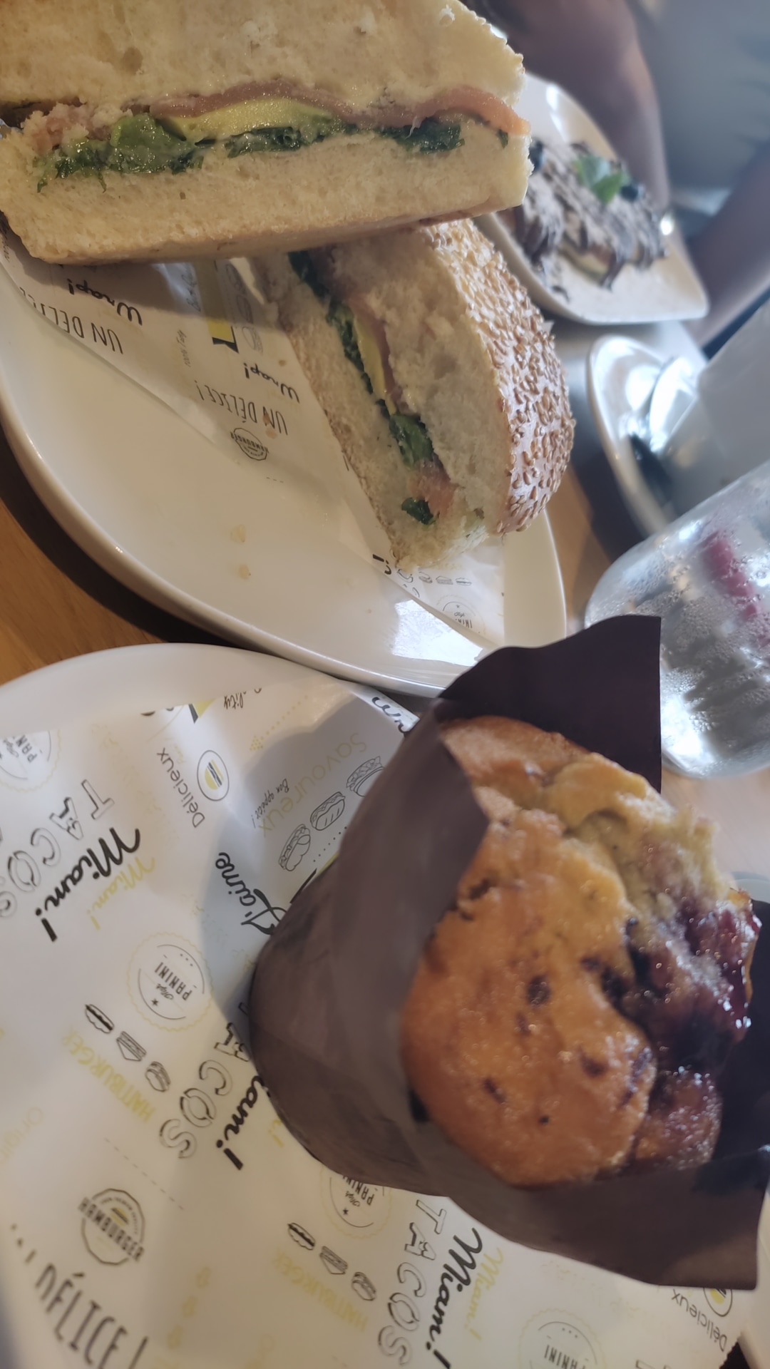 Nous nous sommes régalé ! Simple et efficace ! En pause, en brunch, pour le goûter ou une petite faim dans une bonne ambiance 🥰 Bagel saumon et groooos muffin au chocolat RAS 😅