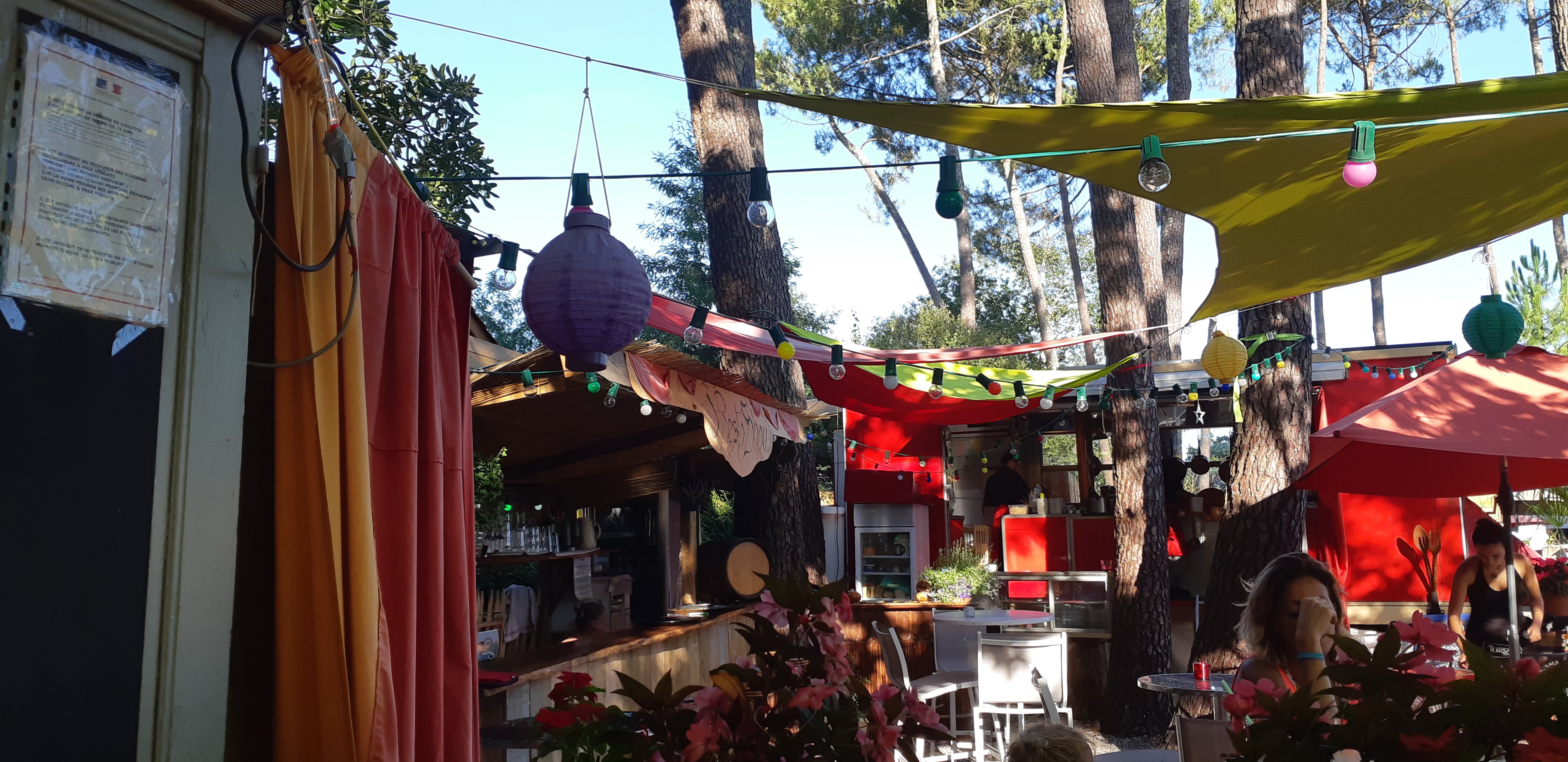 Lieux très agréable... terrasse ombragée bordée de guirlandes lumineuses avec une musique cool, personnel très sympathique...les plats sont succulents et faits maison avec le terroir local. La carte est simple mais maîtrisée. On peut voir les cuistots œuvrer pendant que l'on déguste un jus maison de fleurs d'hibiscus ou une bonne bière bio d'un brasseur de Biscarrosse. Les Burgers de bœuf et ceux au canard sont excellents. Les chiens sont les bienvenus. Pour les desserts, le fondant au chocolat est réellement fondant a cœur et croustillant a l'extérieur, il est cuit à la demande...c'est rare dans un restaurant.La note, hé bien comptez environ 25€/personnes pour plat + desserts + boissons. Mais la qualité est là ! Une adresse incontournable de Biscarrosse.