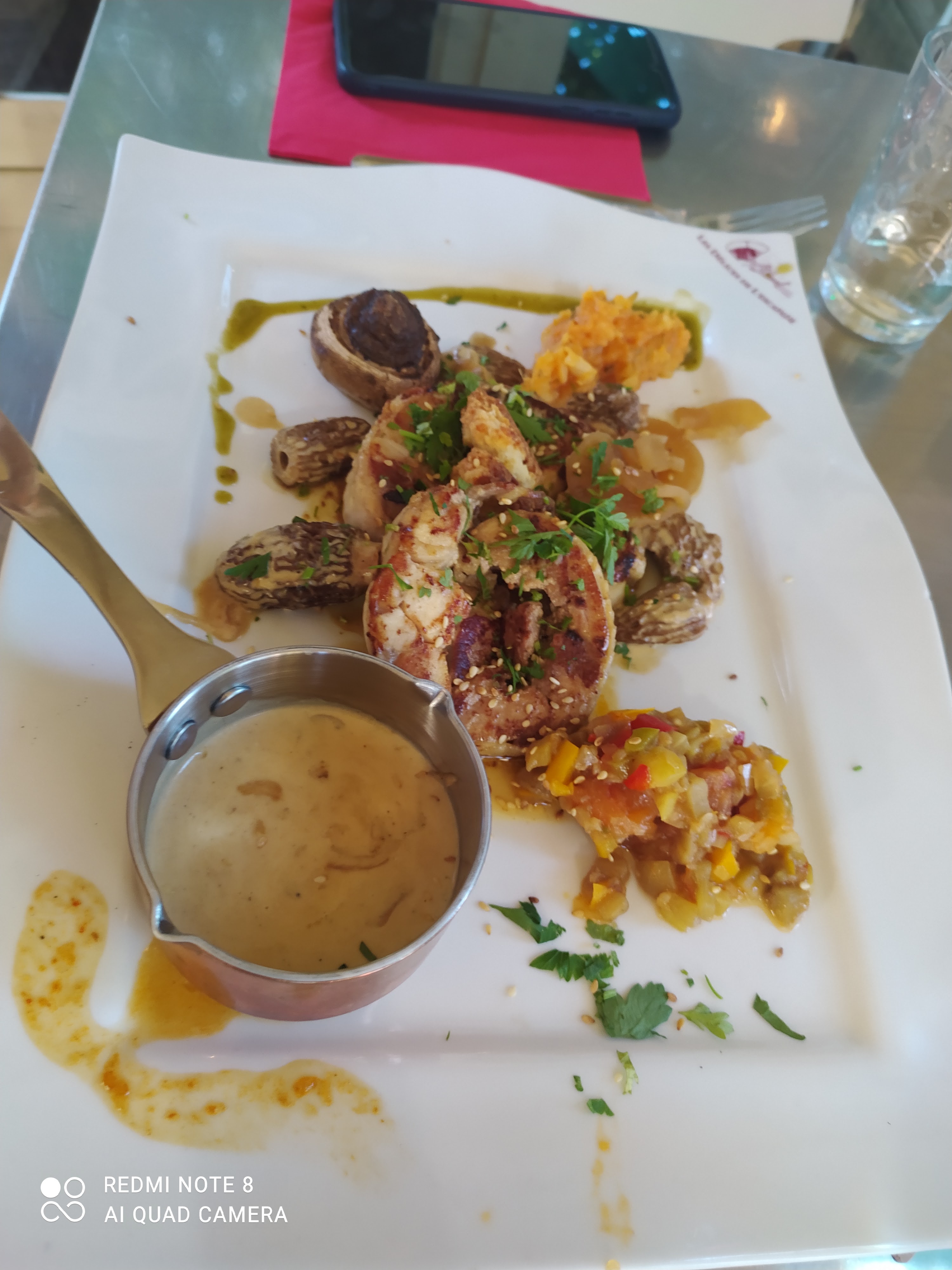 Du tout fait maison, des mets délicieux avec de belle assiette.Deco sympa, les cuisto à la vue de tous super sympa Je le conseil fortement