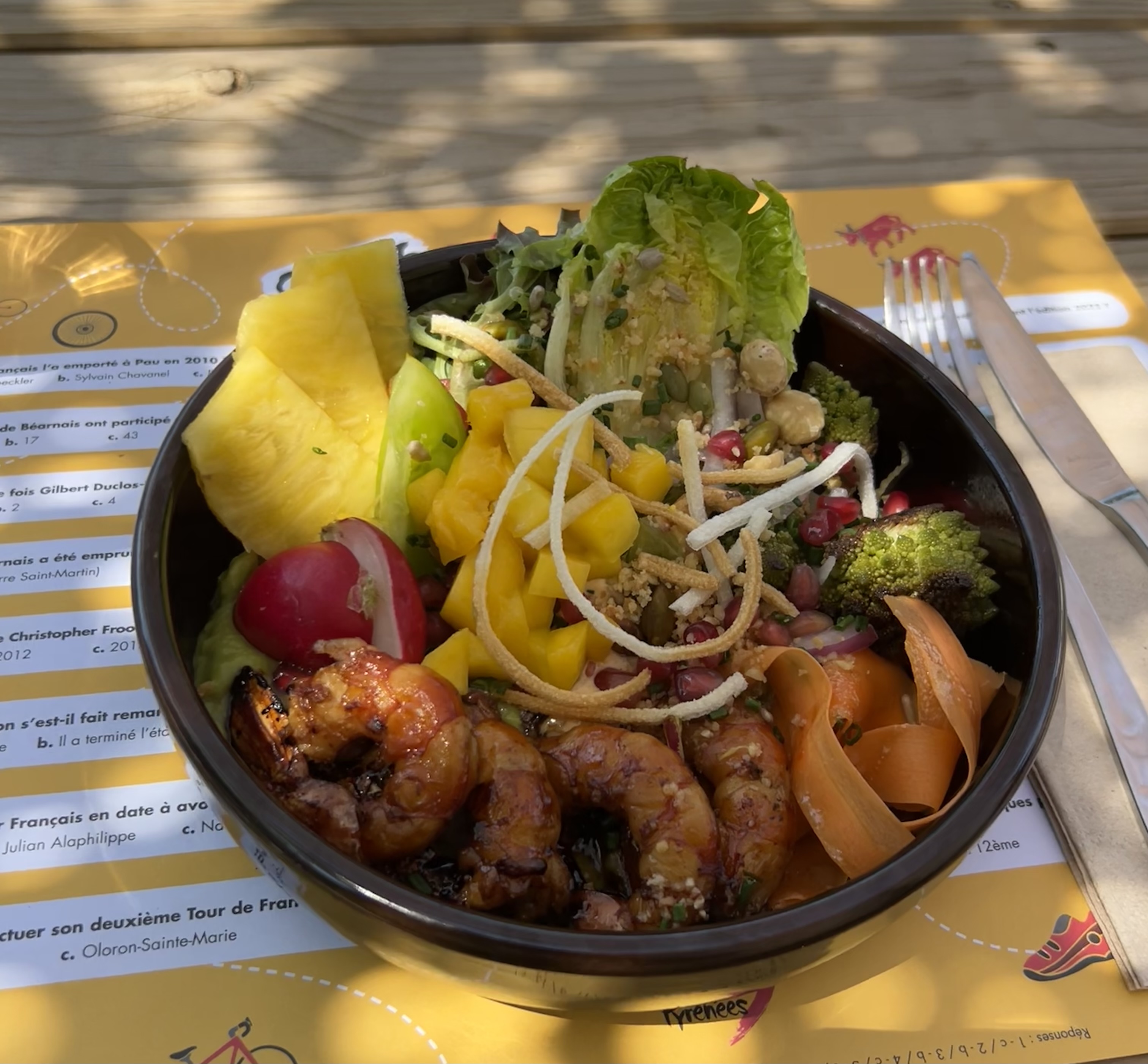 Cadre très sympathique avec un super accueil. Leur nouveau poke bowl du mois d’août m’a agréablement surprise par ce mélange mangue gambas. Je recommande vivement ce restaurant s’était excellent !