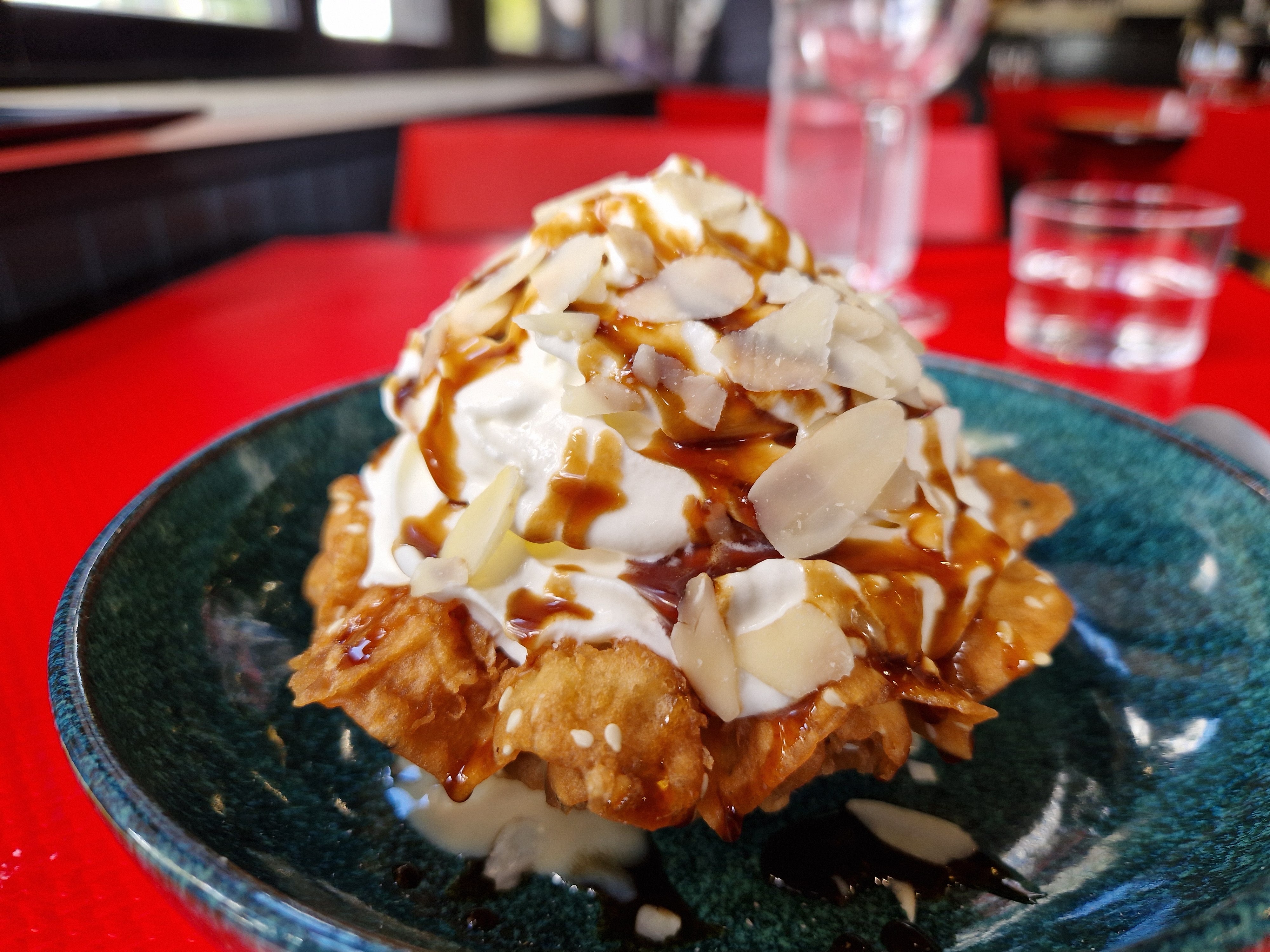 Venu un midi, excellent plat (nouilles croustillantes) et dessert gourmand et succulent (gaufre frie avec boule de glace : divin). Un peu cher (31€) mais ça les vaut largement 👍🤓