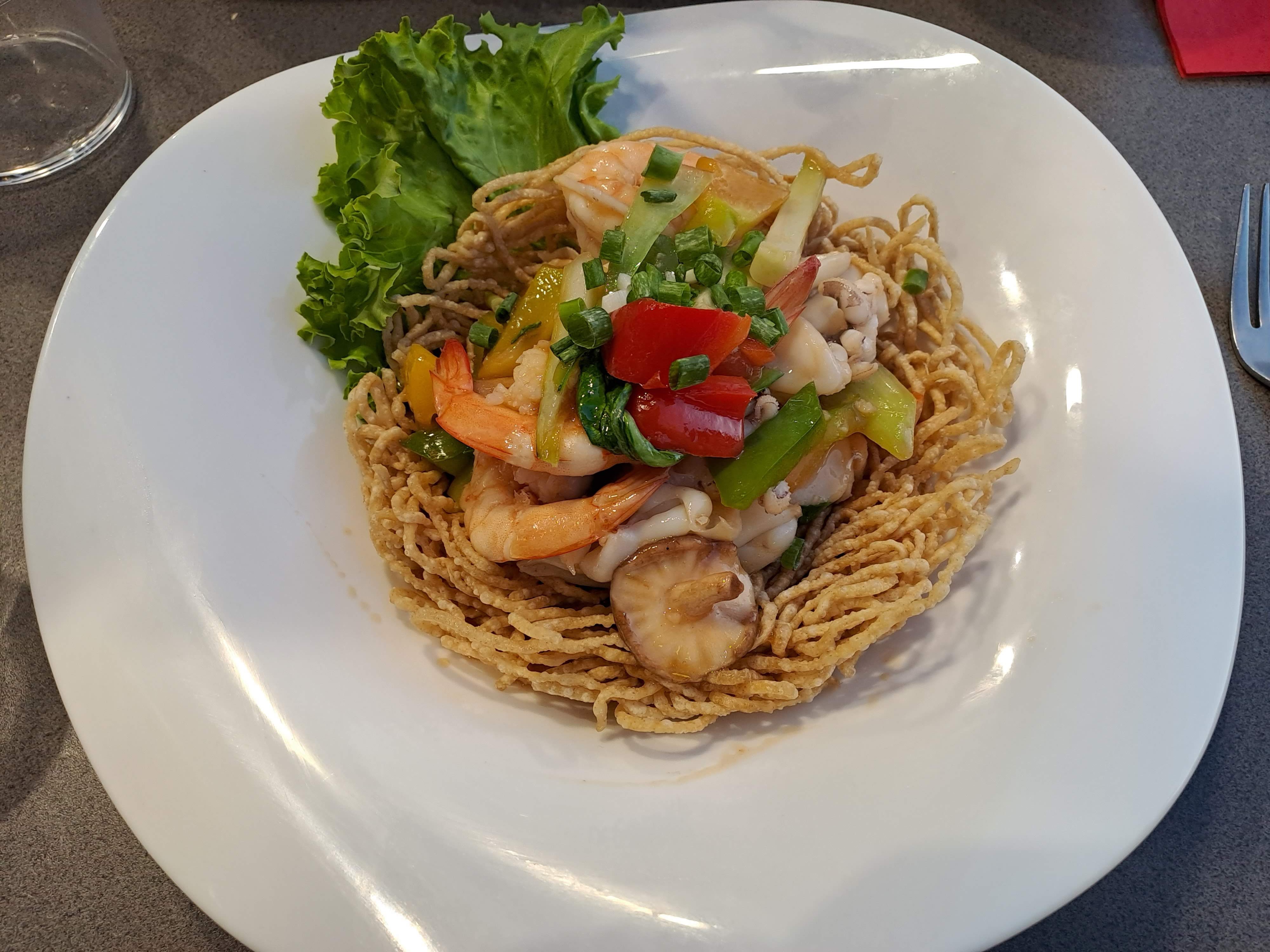 Très bon restaurant, l acceuil très sympathique, la durée du service correcte, la nourriture excellente. Le menu enfant au top . Crabe farcie et salade thaï très bon . Les nouilles croquantes au boeuf superbe et je n ai plus le nom en tête (Trio fruits de mer calamar, crevettes, noix de st Jacques et choux chinois) excellente. Dommage on vient de loin sinon se serait une adresse à garder pour y revenir