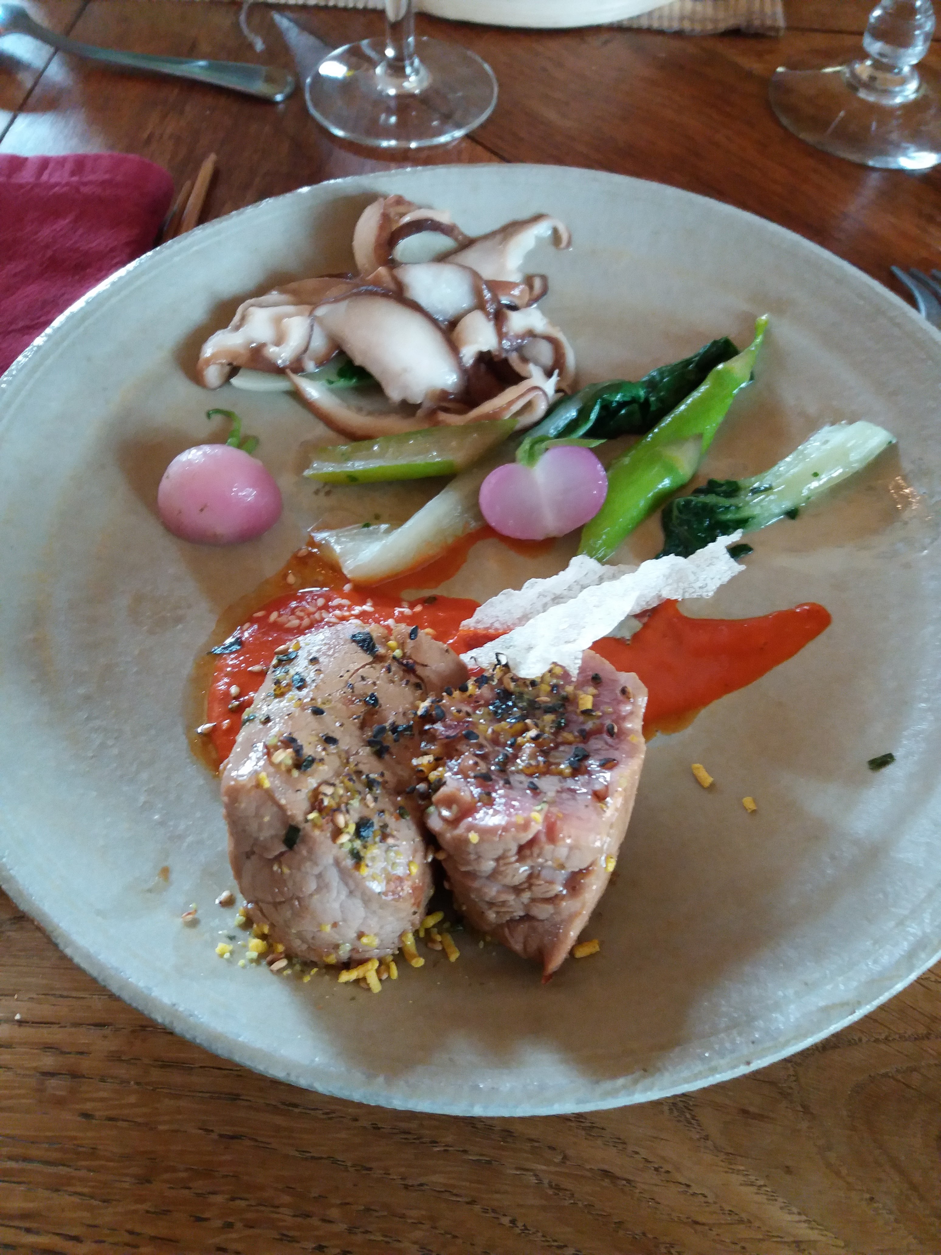 Différent et inattendu, tant dans la cuisine que dans la tête du personnage qui fait naître un plat au travers de bon produits locaux, solide et liquide bien sûr ! Ce n'est pas une démarche gustative mais une expérience culinaire, un voyage... Un grand sens du partage pour ce Chef. Bravo