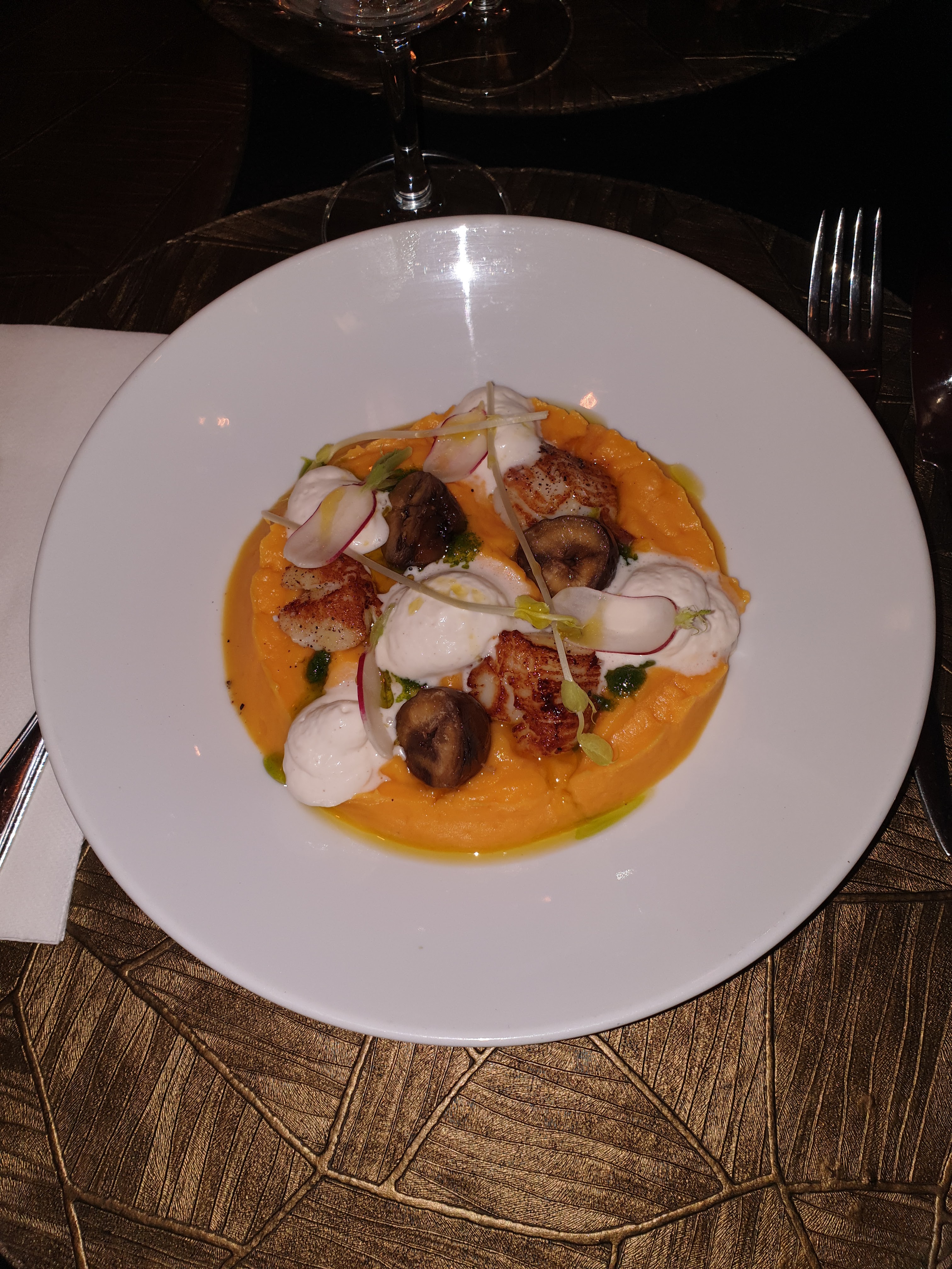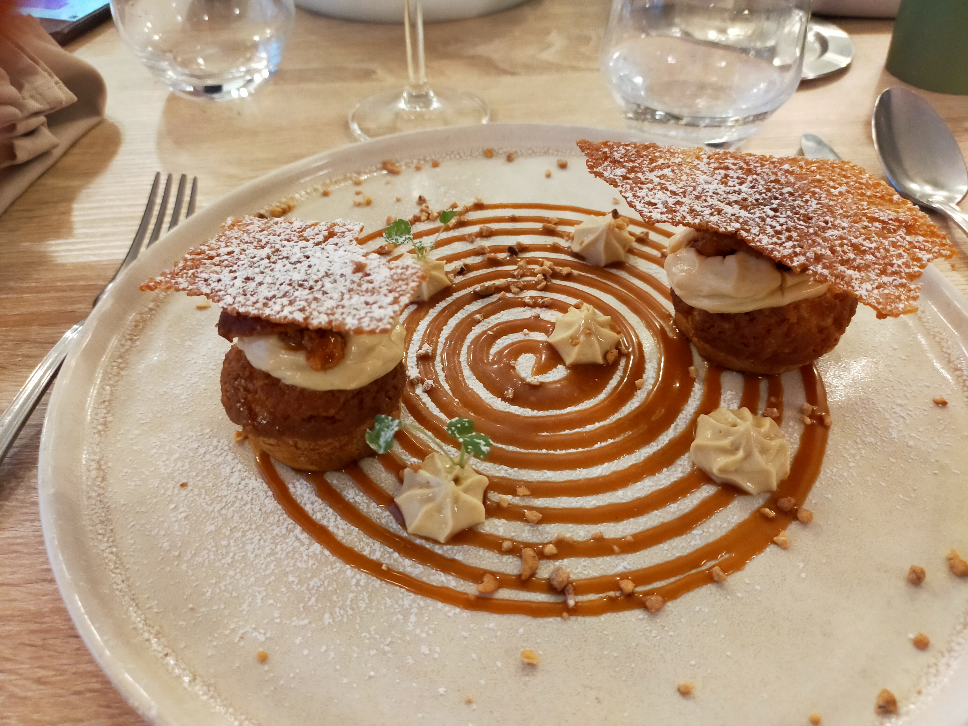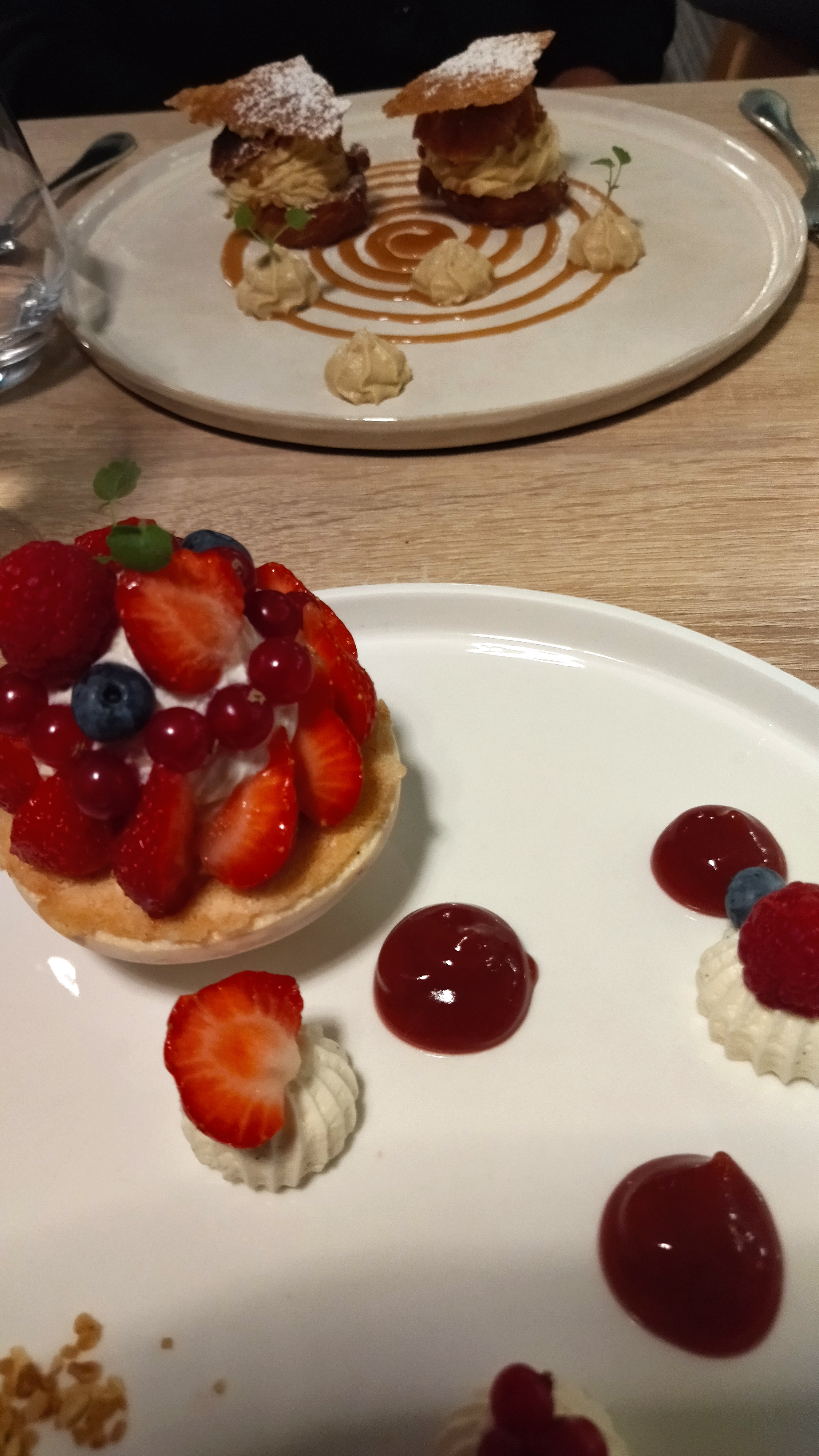 Un peu déçu par l'entrée coquilles st jacques sans effet wahou, le plat de filet de bar était bien meilleur notamment pour la sauce mais on aurait aimé un peu plus de risotto , le Paris-brieuc était lui très délicieux notamment par sa crème fouettée