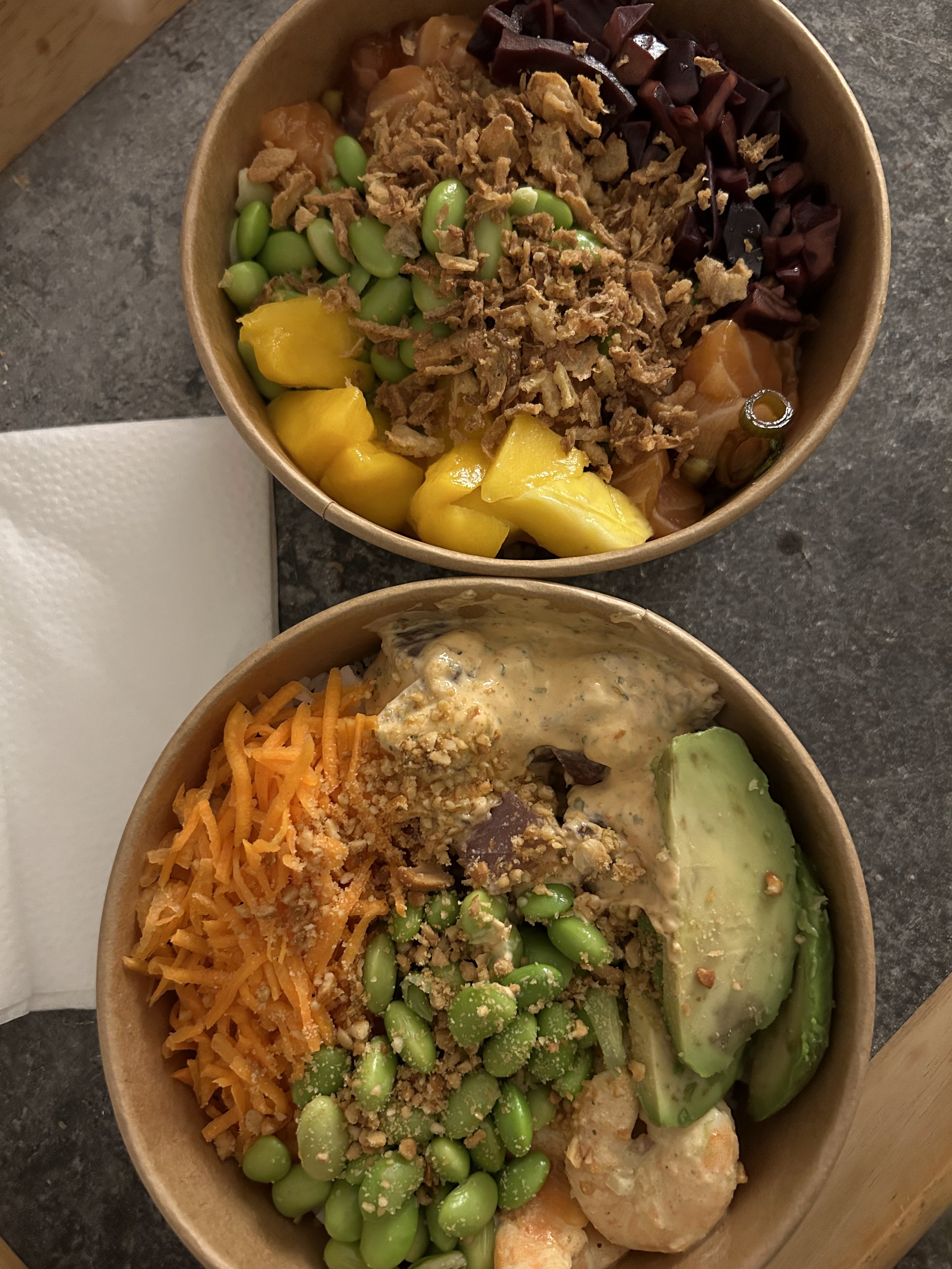 Les poke sont délicieux avec des produits frais. Cela fait deux fois que j'y vais et c'est vraiment très bon. Le repas de la Saint valentin était préparé avec amour L'équipe est très professionnel et amaible. Je le recommande.