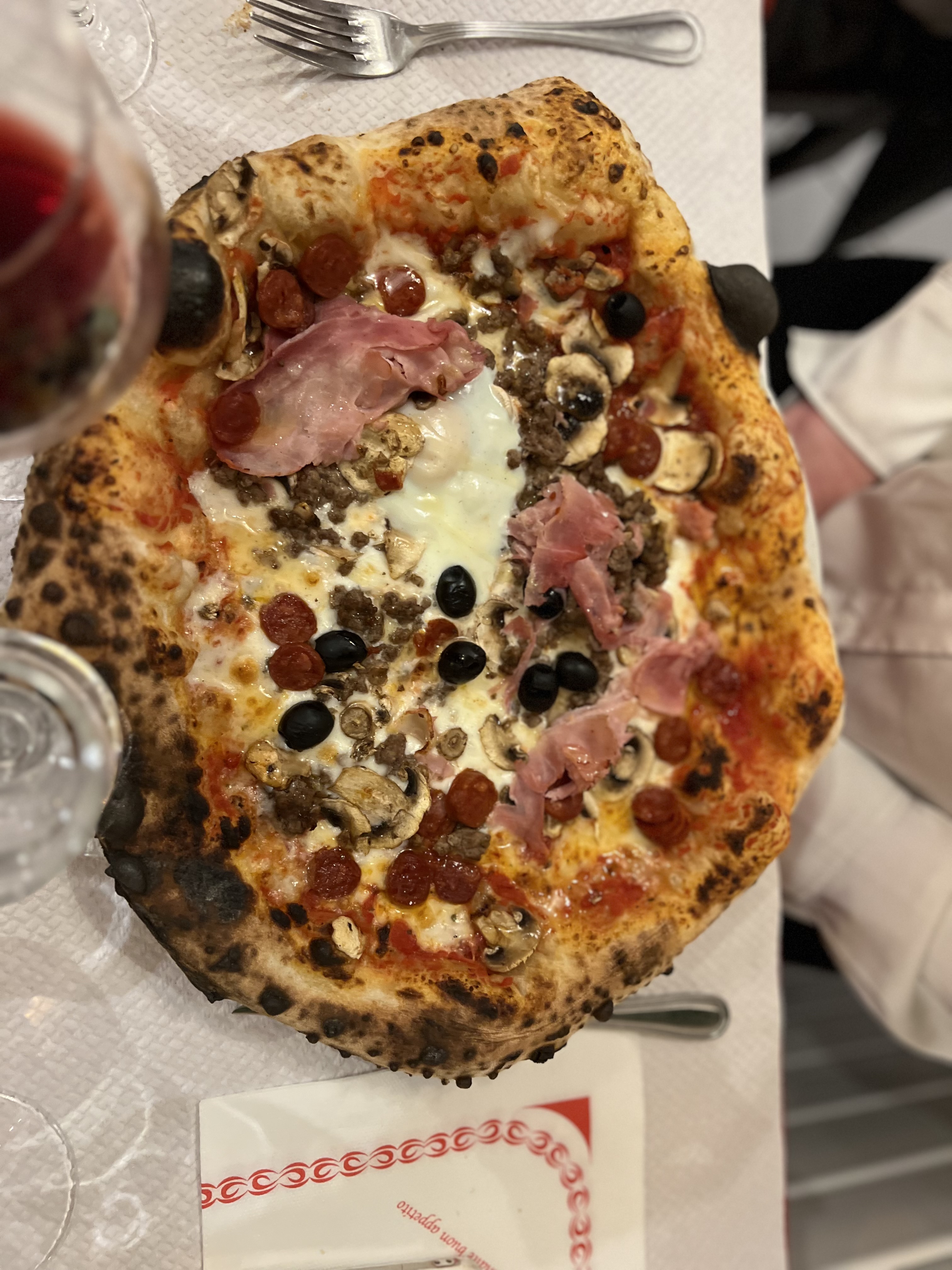 Les pizzas sont très bonnes, la pâte est aérienne, légère, bien cuite, comme est censée l'être une pizza napolitaine quoi. Juste dommage pour l'épaule à la place du jambon