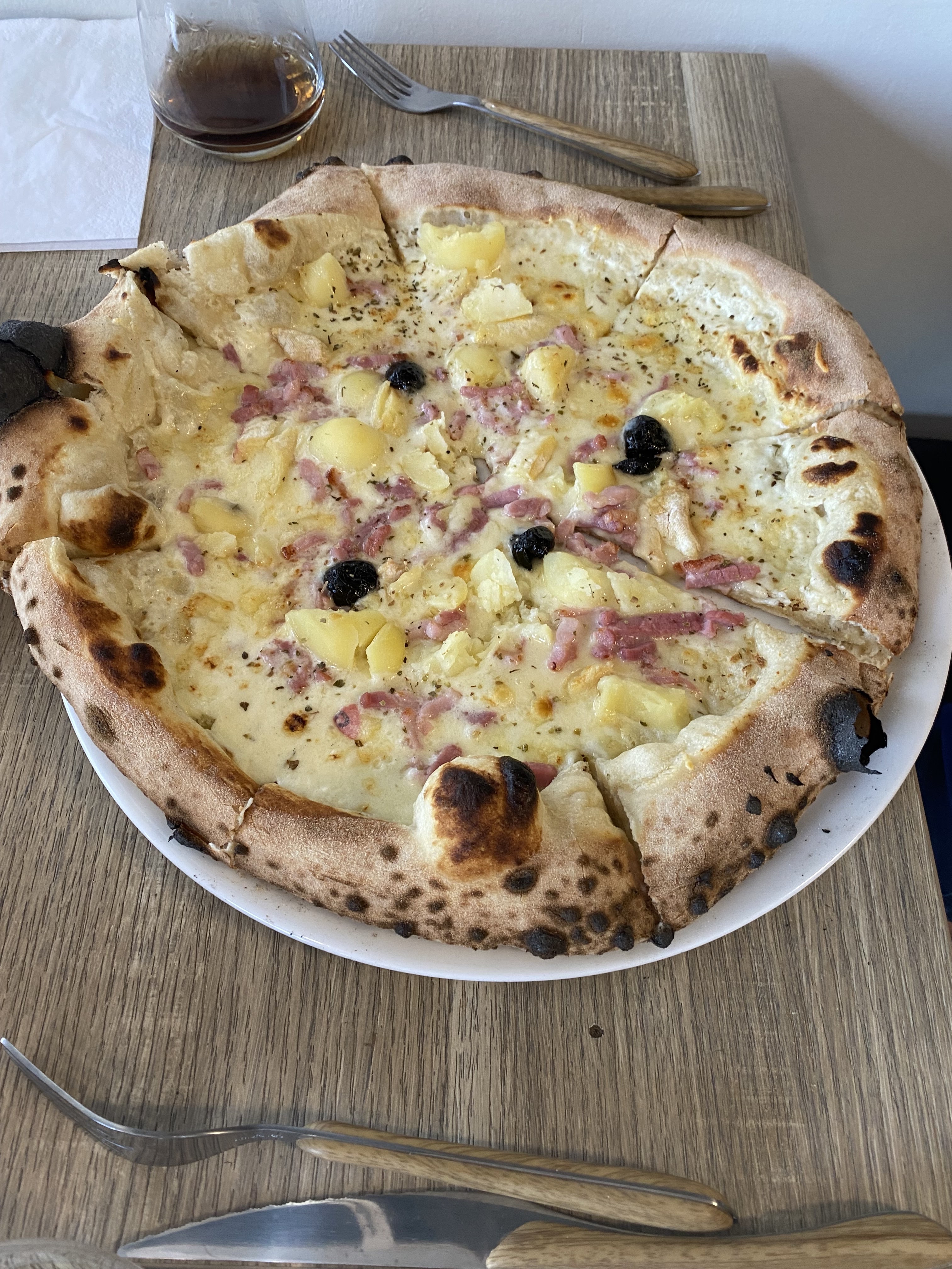 Excellente pizza généreuse et bien garnie. Un vrai régale avec ces pizzas cuites au feu de bois qui apporte du croustillant. Bravo!