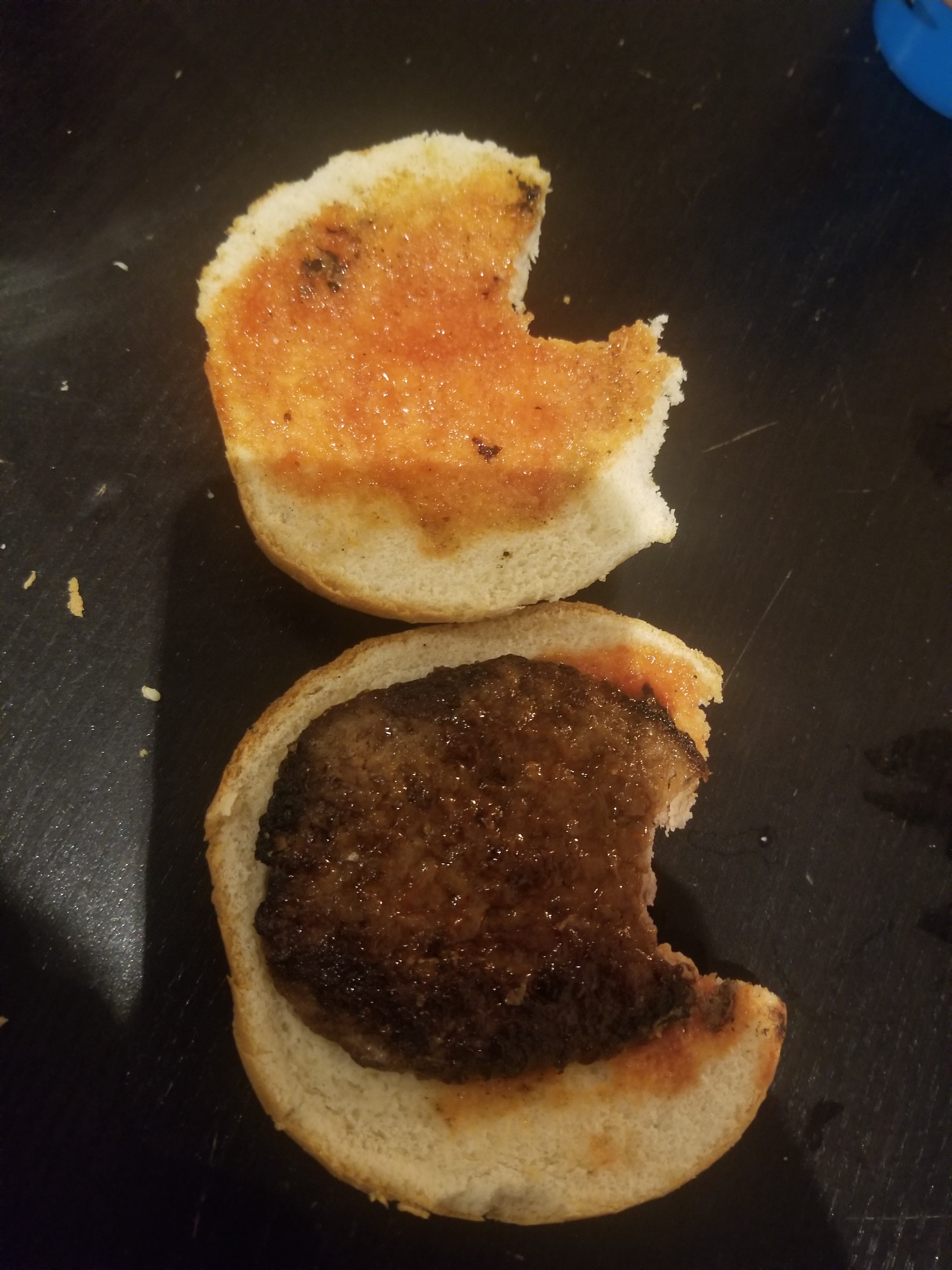 Bonsoir, une fois arrivée chez moi pour déguster mon hamburger, surprise il n’y a pas de steak haché à l’intérieur 🤦♀️! Les frites très dures ! Première et dernière pour moi !