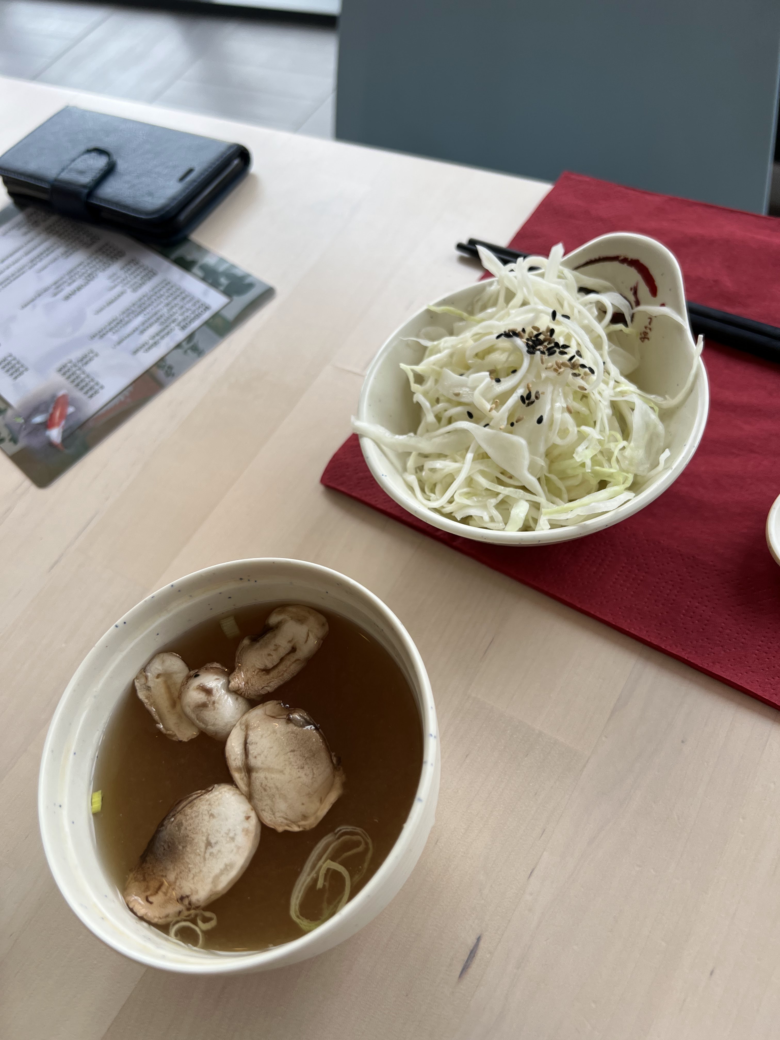 Très petits sushis presque sans garniture, très chers. Très peu de variété. Soupe de bouillon très transparente avec 4 tranches de champignon. Salade de choux vinaigrée et 3 graines de sésame. Sachets de soja comptés (10 ml par menu). Si vous aimez vraiment les sushis, n'y allez pas. Très déçu.