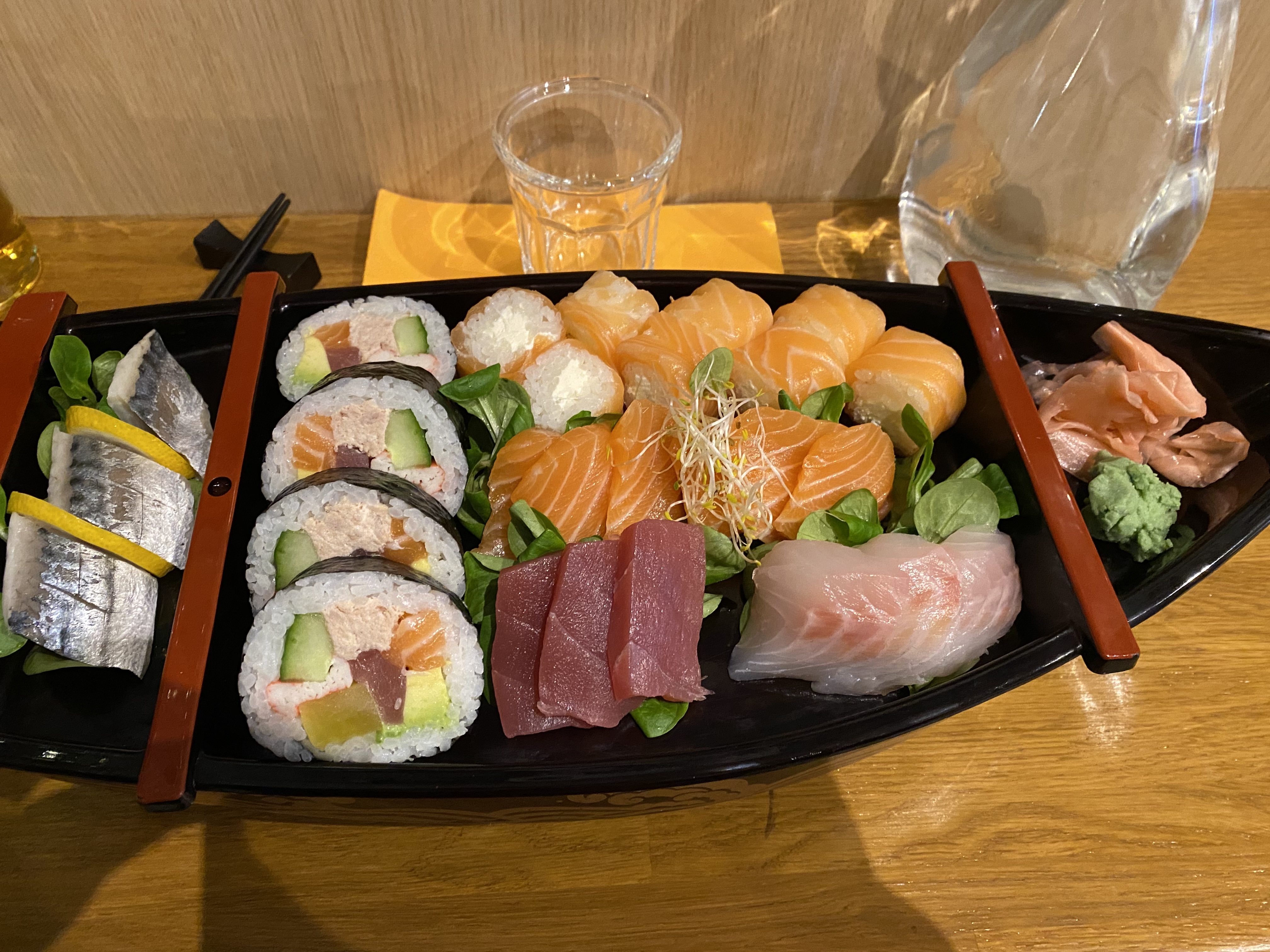 C'était super ! On avait prit un plat composé de sashimi, sushi et maki avec la soupe et du riz c'était Délicieux ! L'ambiance est vraiment au top, personnel aimable et servi avec une vitesse très agréable. Je recommande fortement, le rapport qualité prix vaux le détour. C'est agréable de manger d'authentique sushi a la japonaise.