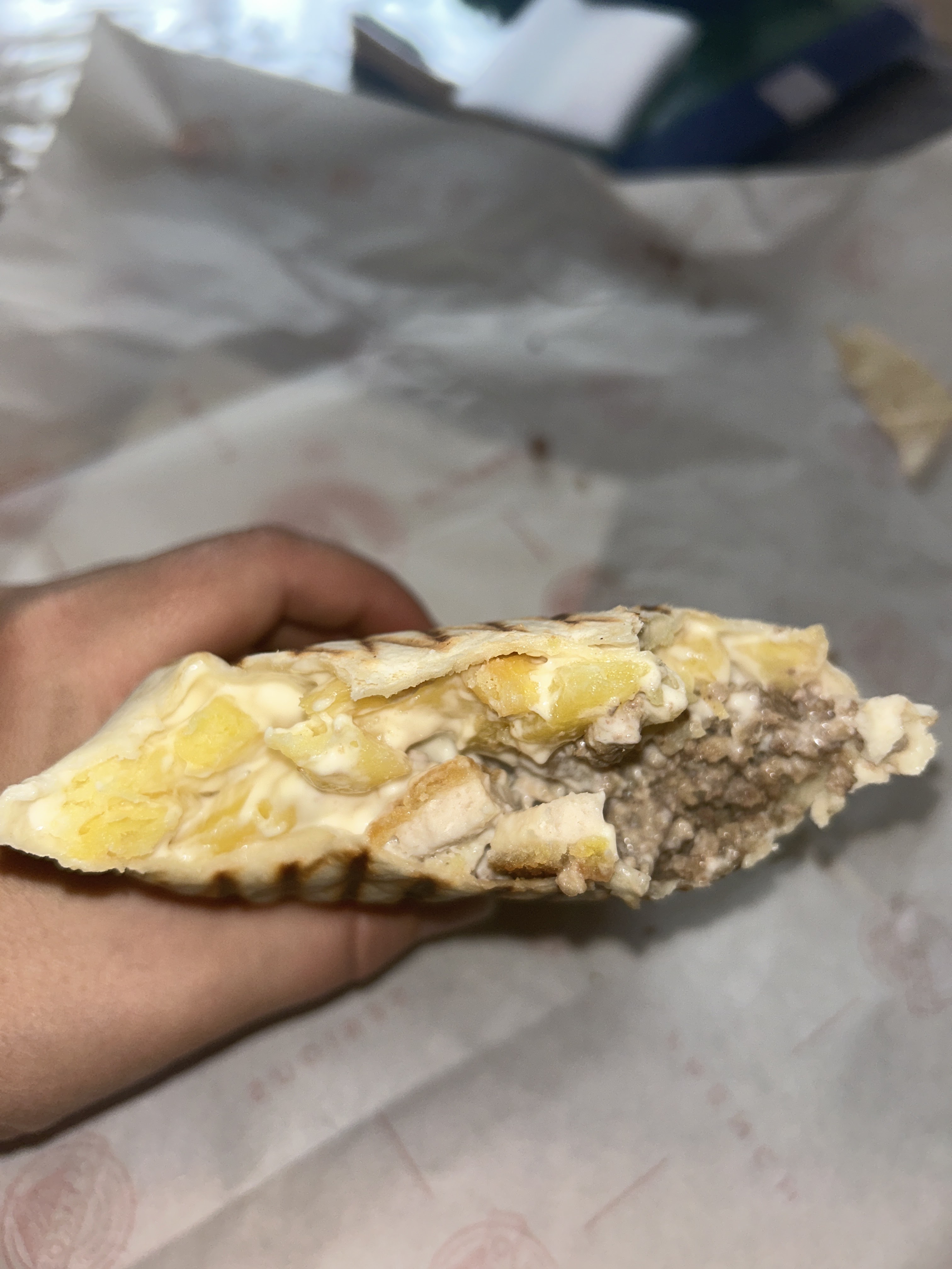 J’ai pris un tacos escalope avec cordon bleu et malheureusement le cordon est congelé 🤢