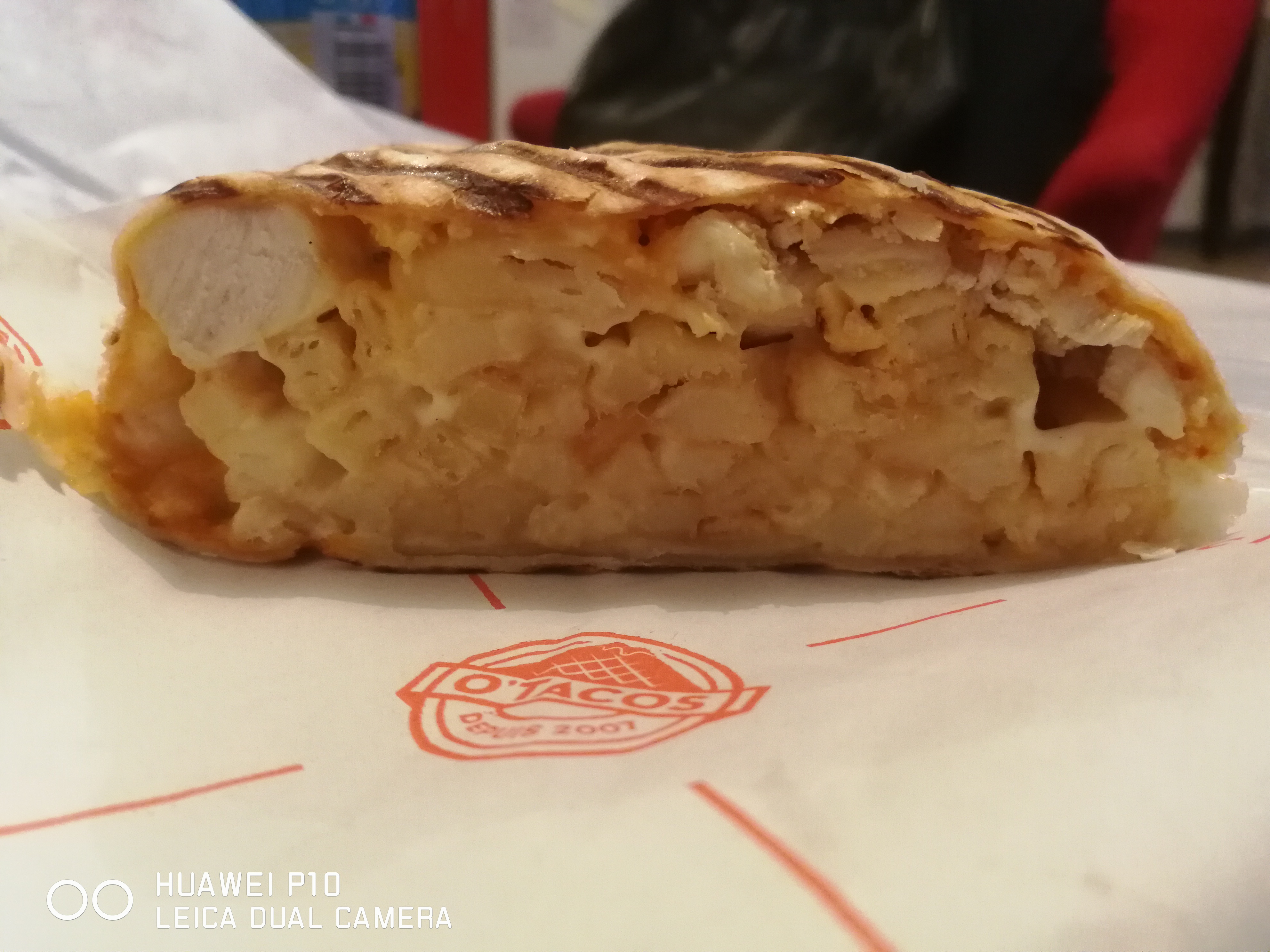 Pour ma sortie malbouffe du dimanche, j'ai laissé de côté le Mcdo et le kebab pour donner sa chance à O'Tacos. Commençons par les points positifs: Le lieu est propre, le service client est correcte. Il y a plusieurs tailles, j'ai pris L et j'ai eu raison. On a le choix entre plusieurs viandes, de la sauce et du fromage en option. Le tout est accompagné de frittes et la tortilla est refermée, ça fait une sorte de pavé. Mais surtout, c'est lourd, tout ce mélange est bien bourratif et on sent bien que c'est très gras. Finalement j'ai pris aucun plaisir à manger ce truc, et j'ai eu du mal à le finir. Il parrait que c'est normal la première fois, mais j'ai pas envie dy retourner. Tout est mélangé, très peu pour moi. C'est pas bon je pense que ça serait parfait pour endurcir les troupes au front et leur redonner du gras. Il y avait un os dans le truc. On appelle ça french tacos, je vous rappelle qu'on est un pays de haute gastronomie! Je vois pas ce qu'il y a de french la dedans! Le taco restera pour moi un met mexicain, bien meilleur que ça!
