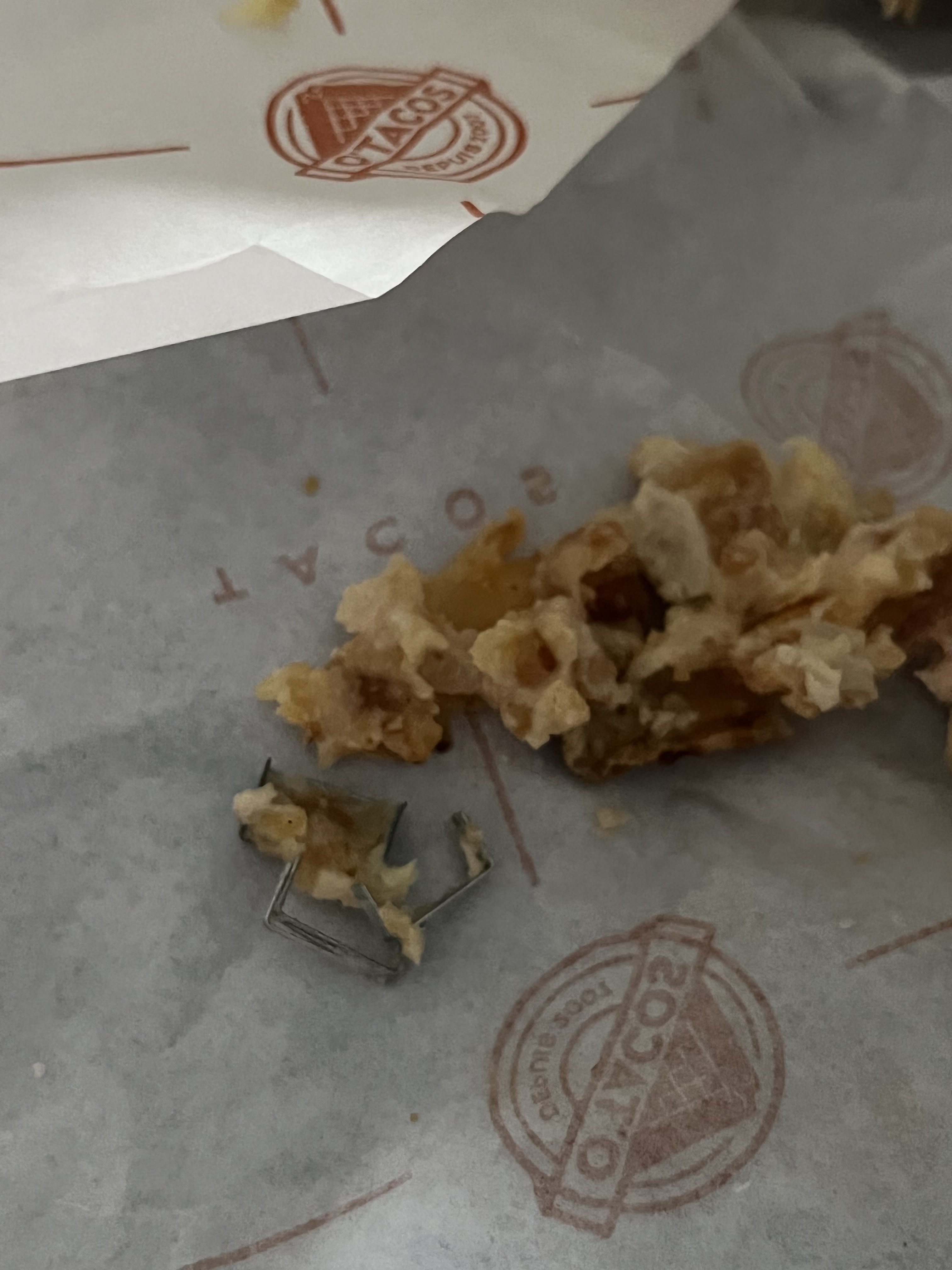 Un scandale, je croque dans mon tacos, et je sens quelque chose de dur, en pensant que c’était un os j’ai retiré la chose de ma bouche et je m’aperçois que je croque dans des agrafes !! Restaurant à fuir si vous ne voulez pas faire une occlusion intestinale. Plus jamais otacos !