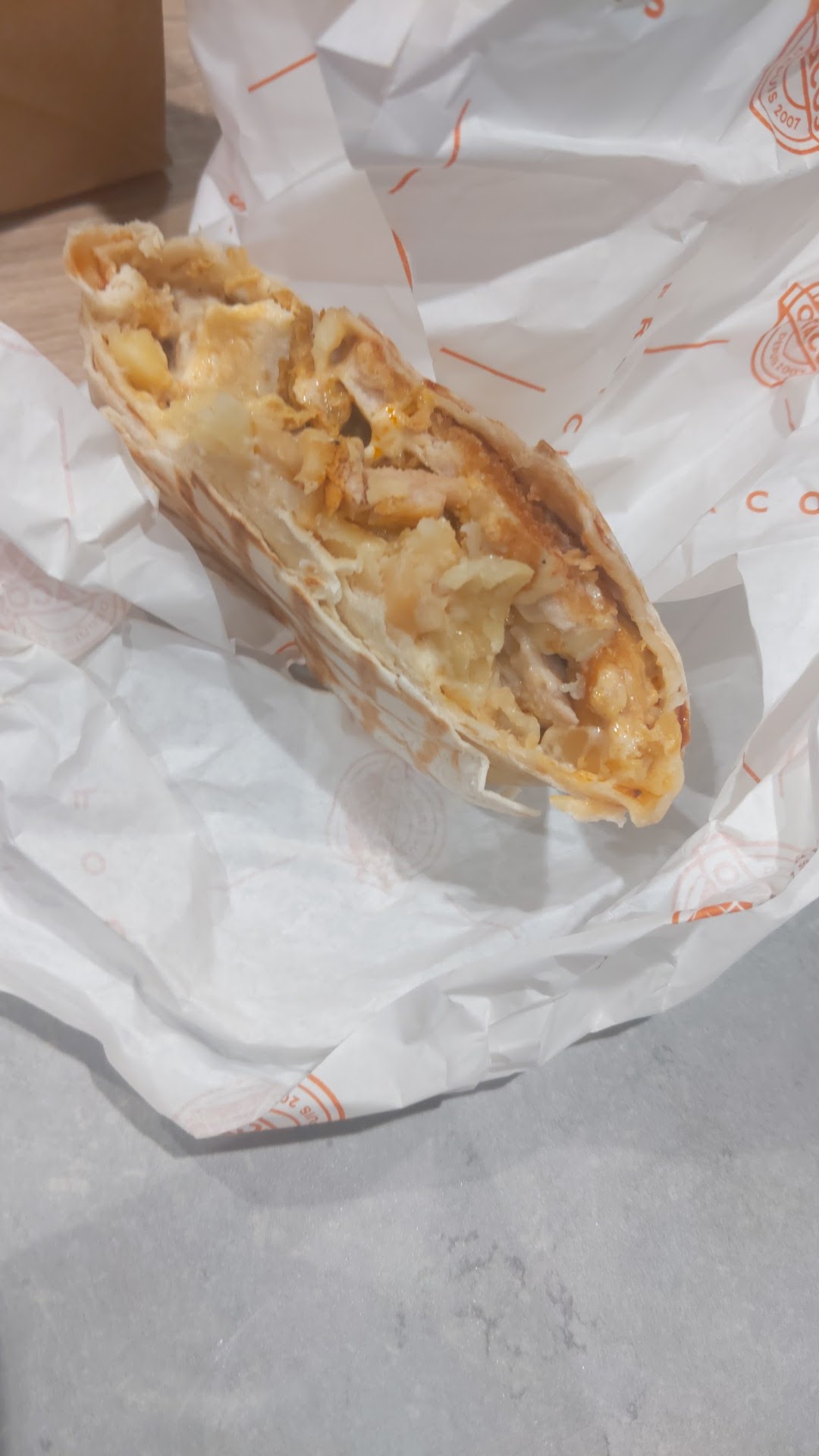 Une grande arnaque! En voyant les commentaires on pense qu'on va manger le vrai O'tacos qui n'est pas le cas un sandwich écœurant rempli de frites congeler avec 2 morceaux de poulet et beaucoup de sauce.