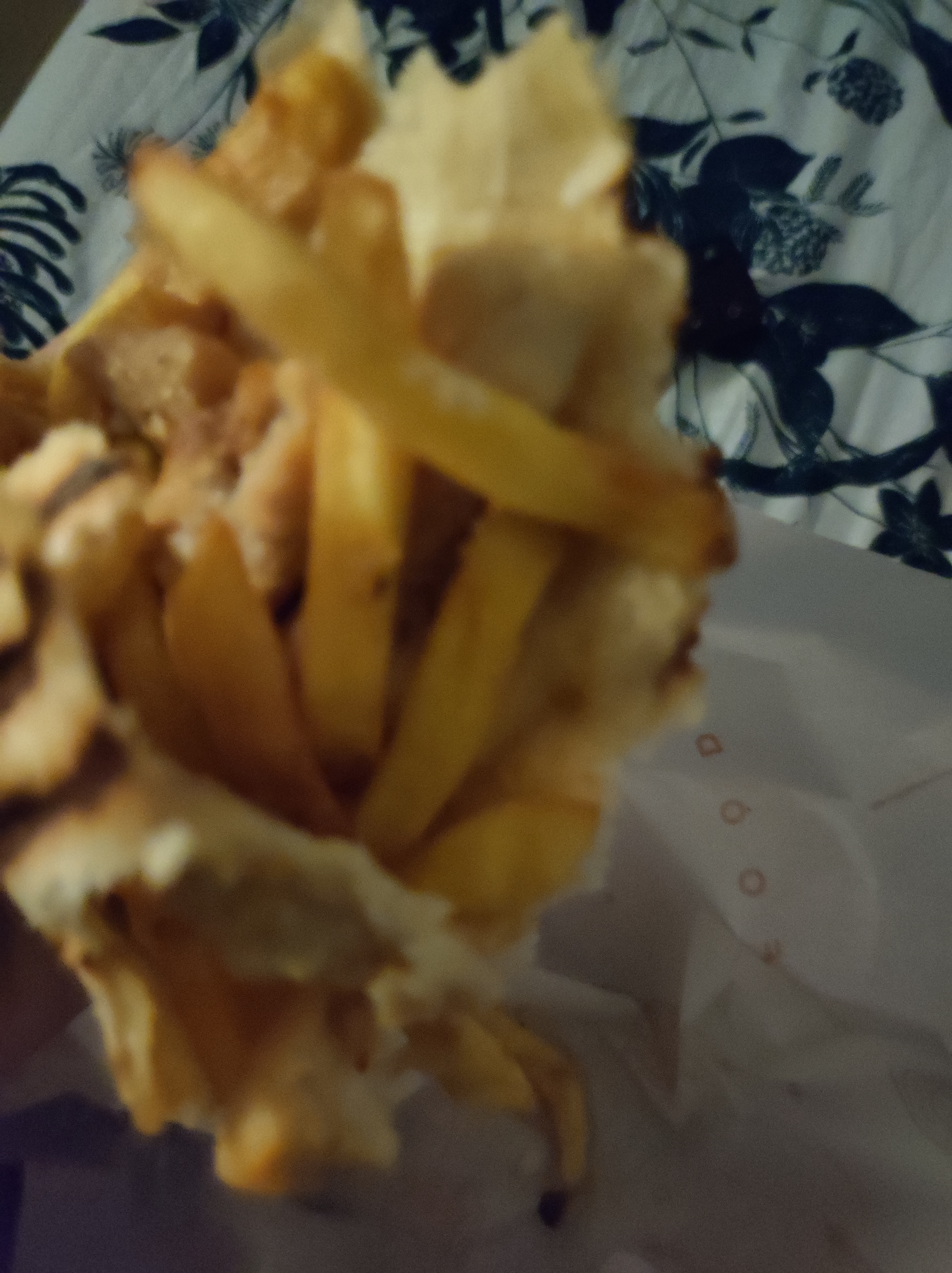 Frites pas fraîches, cuites ce matin ou je ne sais quoi pour nous les balancer au soir après re-cuisson ..2-3 bouchées et hop brûlures d'estomac !!! Sans parler du mélange des viandes alors qu'on a commandé poulet mariné!!! Je trouve que vous êtes sales et pas dutout professionnels!!! Très déçus !! Comment vous pouvez laisser les gens manger un tacos aussi gras et qui date de je ne sais quelle heure?!