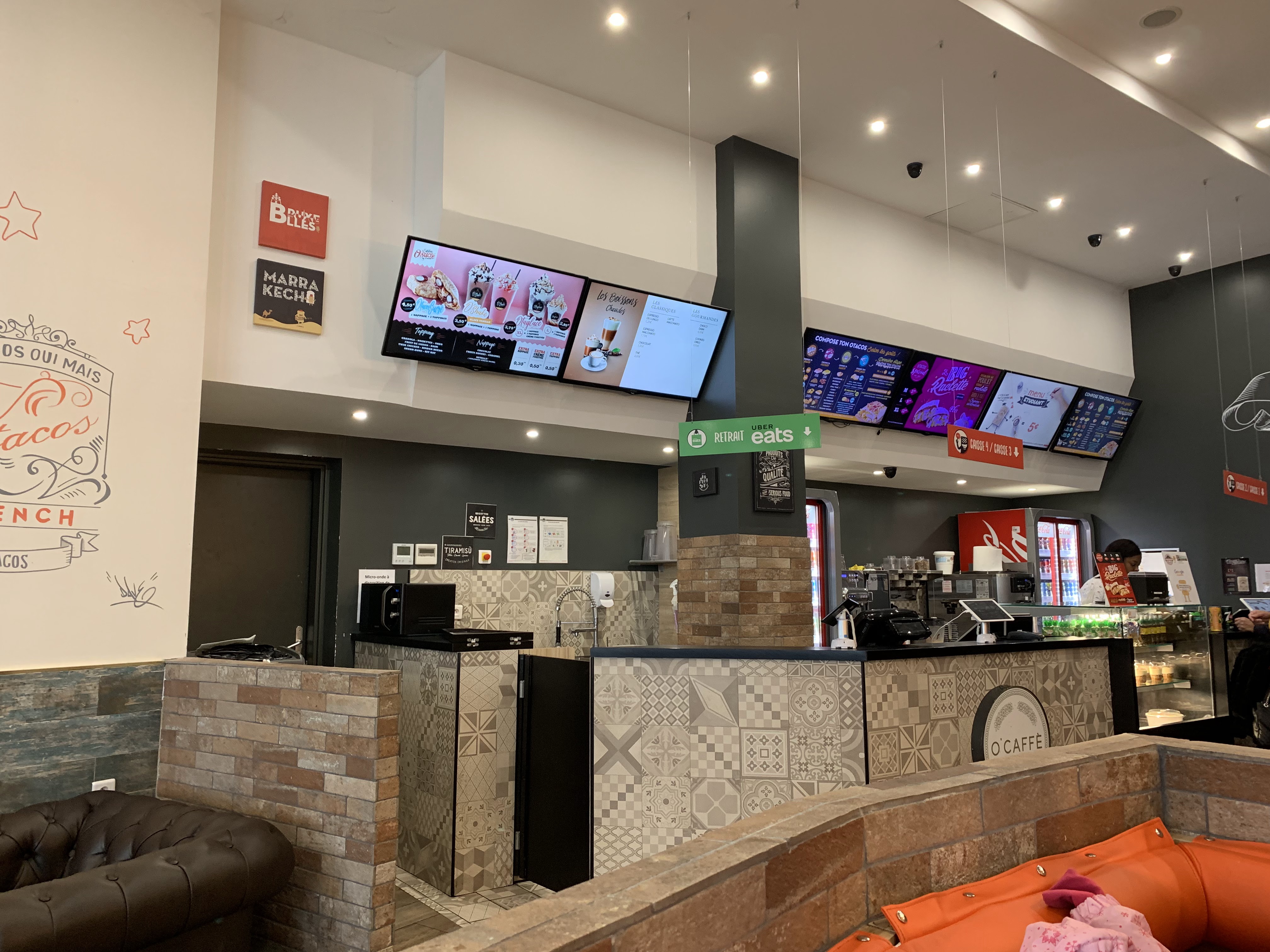 Très bonne ambiance c'est très beau le service est extrêmement long le tacos est bon mais il est très froid parfois un peu trop cuit et petit comparé aux autre tacos dans les autre o'tacos mais sinon très bon.