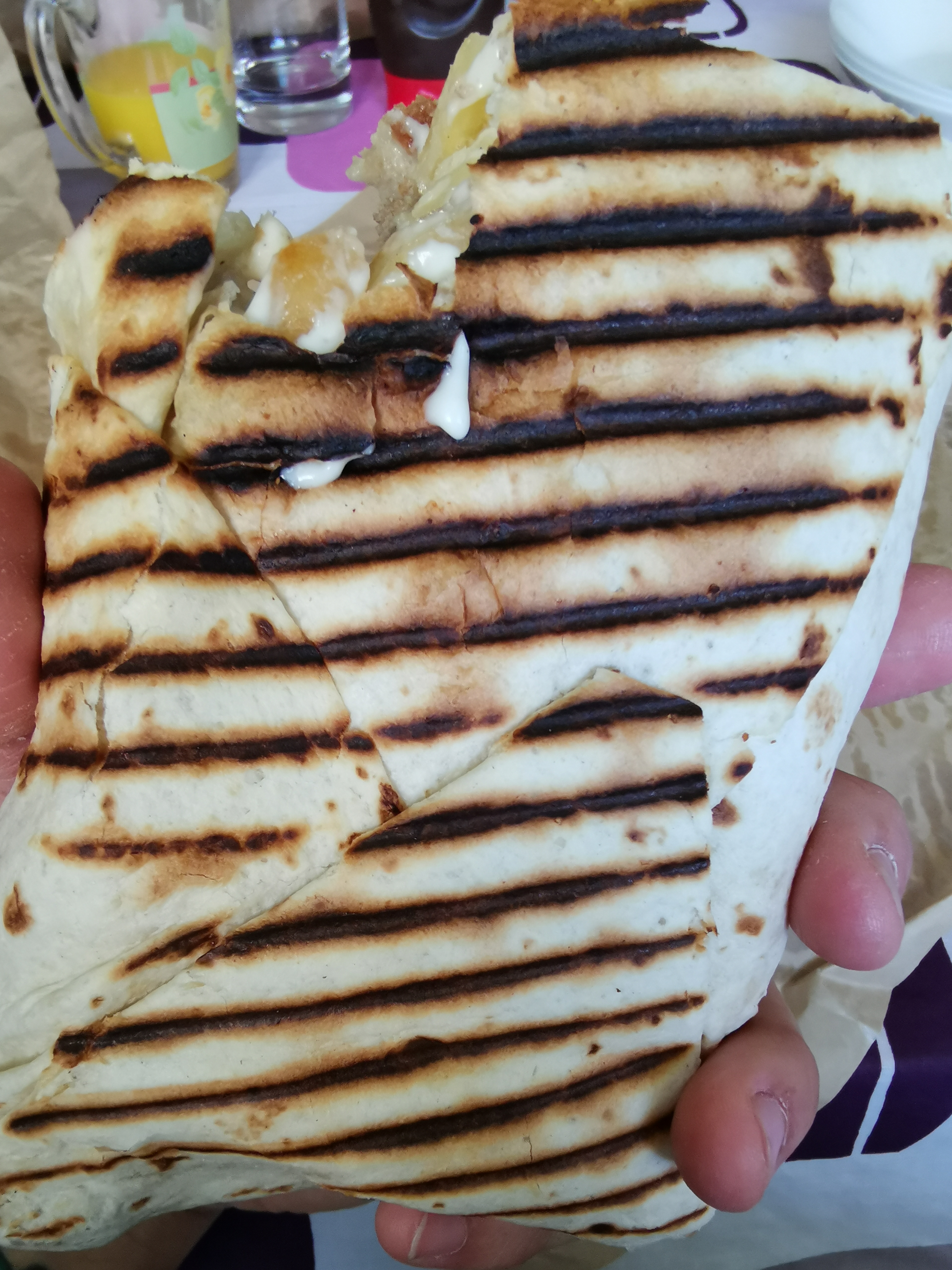 Commande uber eat. Nous avons l’habitude de commander et n’avons jamais été déçus mais cette fois ci c’était vraiment pas bon, les boissons étaient chaudes et posées n’importe comment sur les tacos. Les tacos quant à eux semblent avoir changé de recette. Je ne commanderai plus