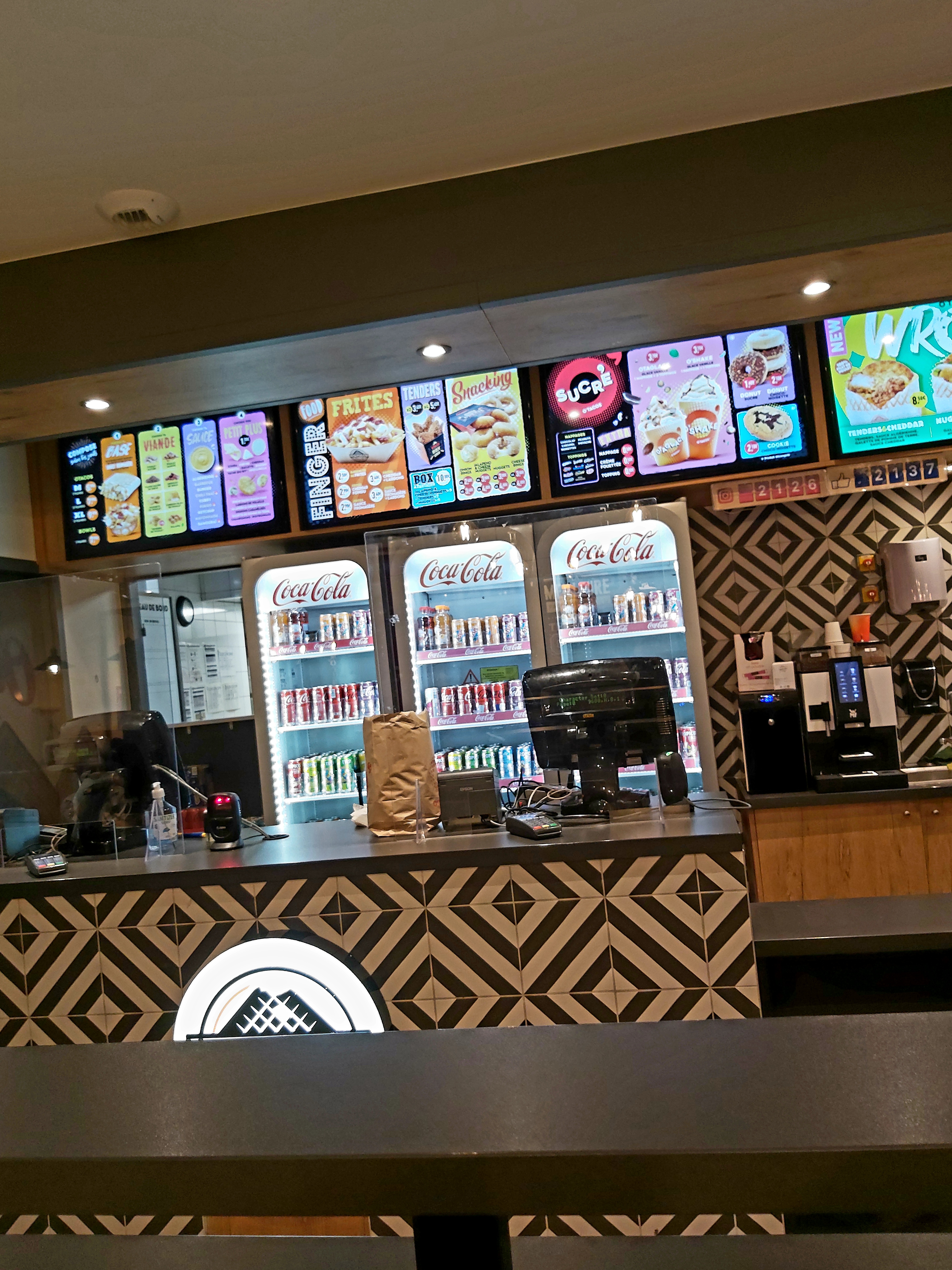 Le cadre contemporain et très beau, la serveuse Zaïneb si j'ai bien entendu super sympathique et professionnelle, seule au service mais prend du temps pour conseiller les clients et avec sourire. Les Tacos étaient acceptables car c'est le principe de la formule de ce sandwich et chacun le fait à sa sauce. Le bémol ce sont les frites froides et fades et non croustillantes, et le café ☕️ expresso c'est le pire mauvais que j'ai bu de ma vie. Un conseil, servir toujours frittes chaudes croustillantes et changer le fournisseur de café.