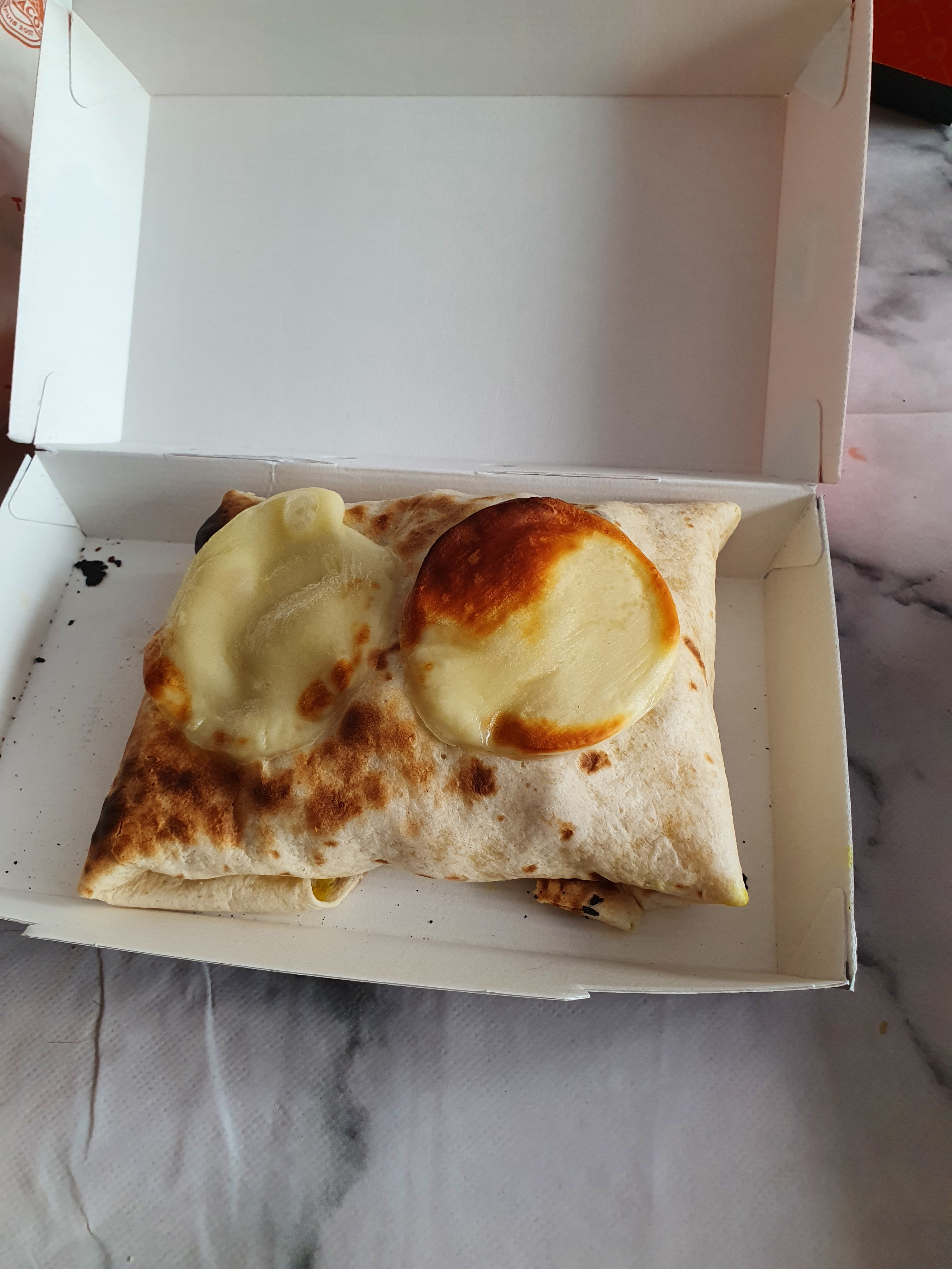 2 soirs de suite que je commande via UberEat, 2 fois que je reçois une commande incomplète. La 2ème fois, j'ai profité de l'offre un plat acheté, un plat offert. Les 2 BBQ M (soit disant) étaient composés de frites et de 3 nuggets (vraiment 3 nuggets), sans aucune sauce fromagère ni sauce BBQ ni mozzarelle. Je ne commanderai plus, je compte pas non plus aller sur place, la seule fois où j'y suis allé, c'était bon mais la commande n'était pas correcte. Bref, toujours un problème, même pas capable de respecter une recette. La photo c'est le fond du tacos, là où devrait être toute la sauce qui a coulé au fond.... C'est tout sec... Au moins le chien s'est régalé avec les nuggets...