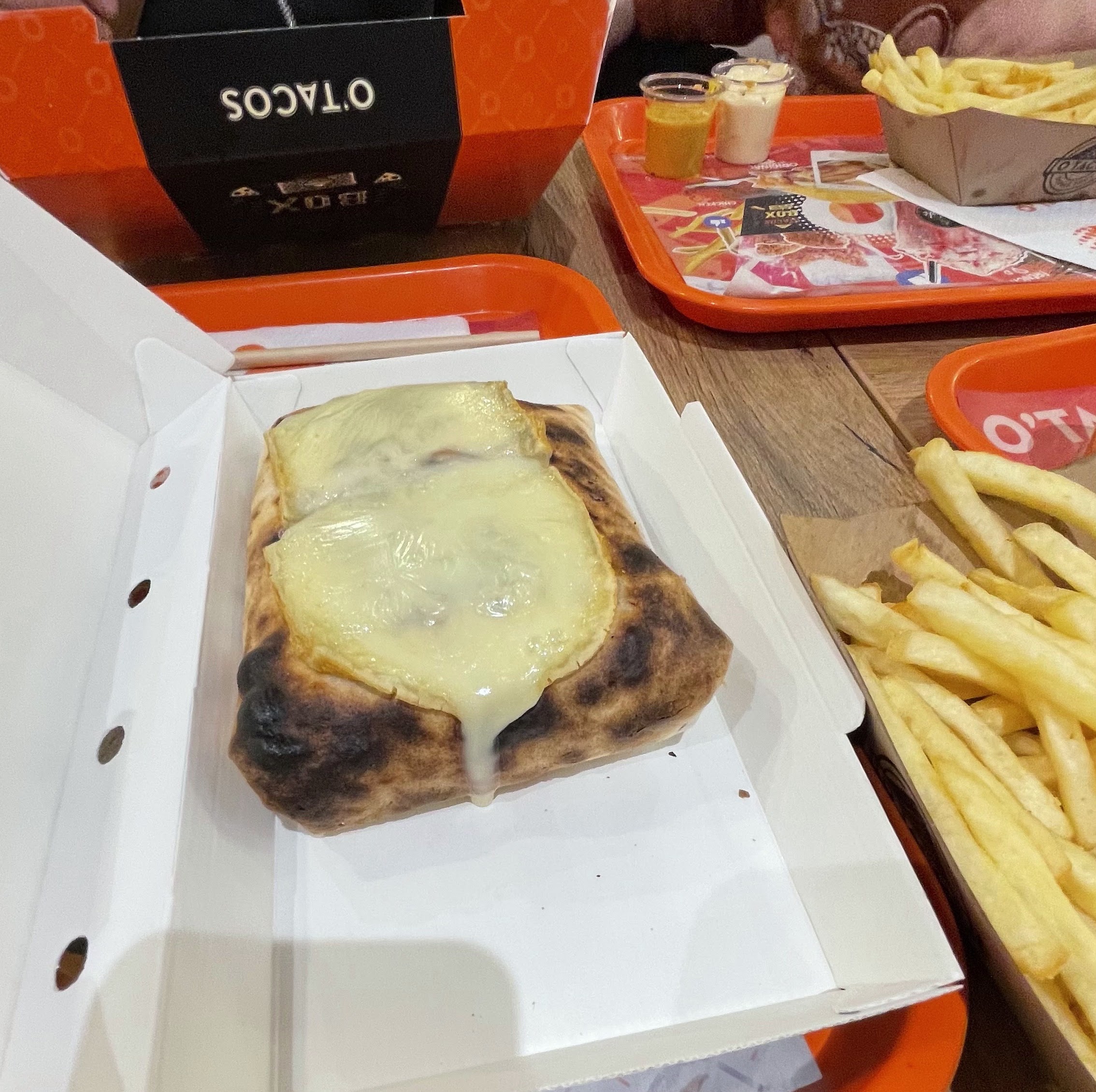 Première fois pour moi au O'Tacos de Mulhouse, on a testé les (box tacos), je me souviens plus du nom exact, franchement c'est bon le concept est top, mais pas du tout copieux pour le prix, beaucoup de frites au fond recouvert de sauce, fromage.. et quelques morceaux d'escalopes, il faudrait revoir les quantités et la proportion d'ingrédients dans la box, plus de poulet et un peu moins de frites par exemple..