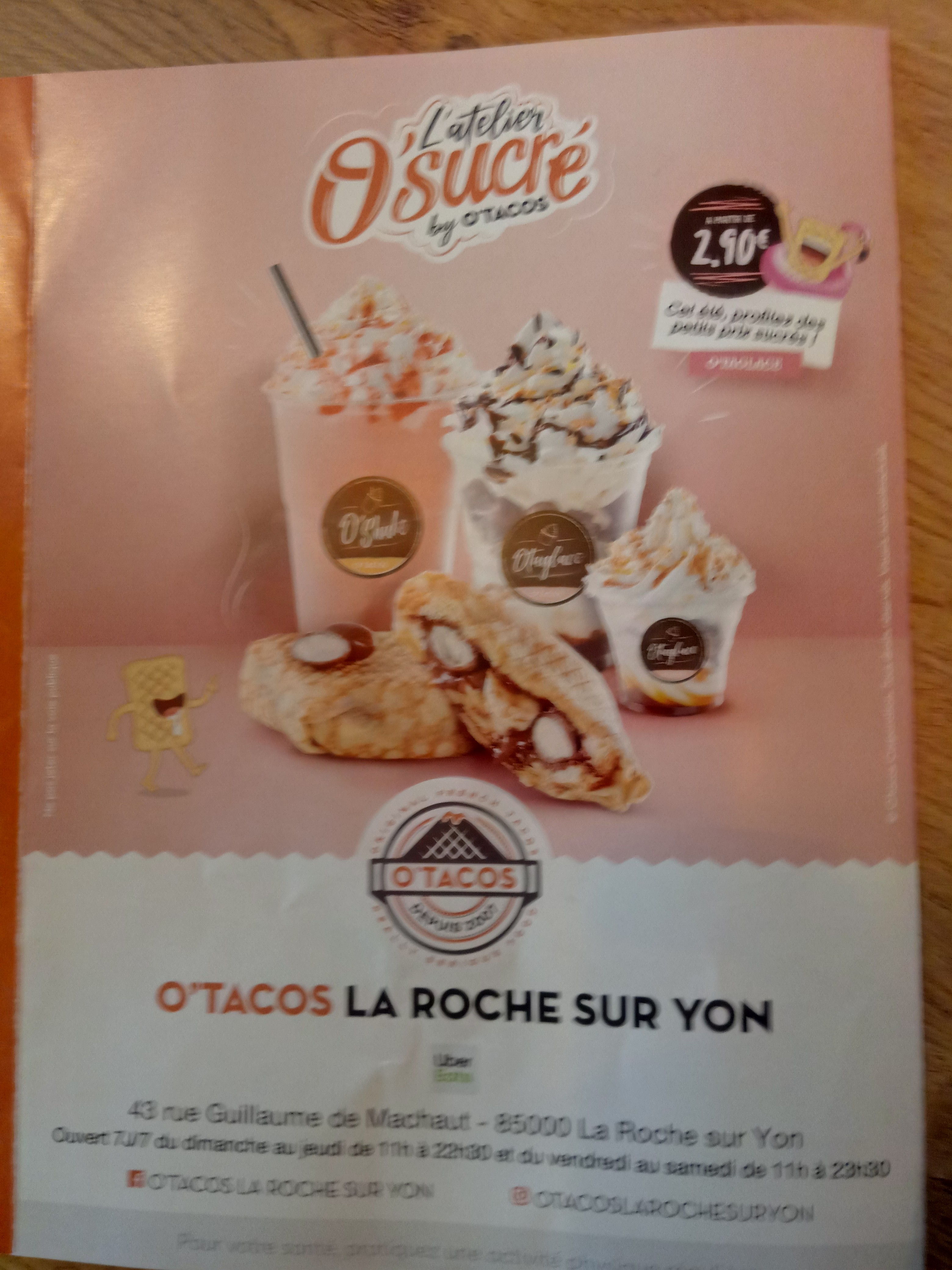Déçu, attente longue, de plus le seul tacos que je commande n'a rien à voir avec ce que j'ai commander, les viandes ne sont pas les bonnes, les simplement ne sont pas la. Extrêmement déçu par ce O tacos