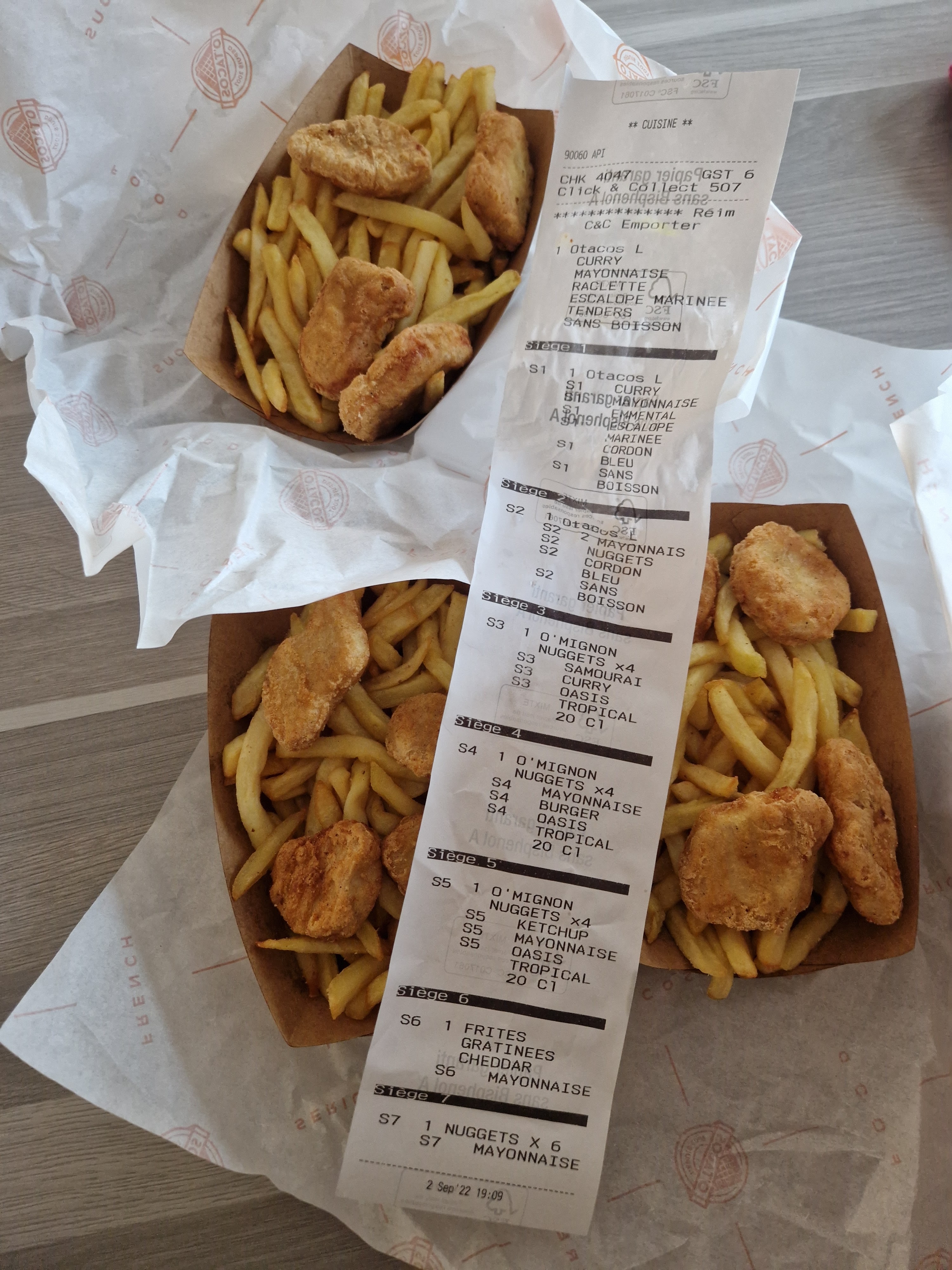 En plus d’une attente de plus de 20 minutes je chaque fois que je commande, je commande toujours un tacos sans sauce fromagère mais non c’est trop demander! 4 fois sur 5 il y a de la sauce fromagère dedans, donc un tacos que je ne peux manger et donc que je pais pour rien! Vue le temps pris pour préparer une commande je ne comprend pas qu’on puisse encore se tromper! De plus j’avais commander un tacos cordon bleu nugget voilà ce que j’ai eu!