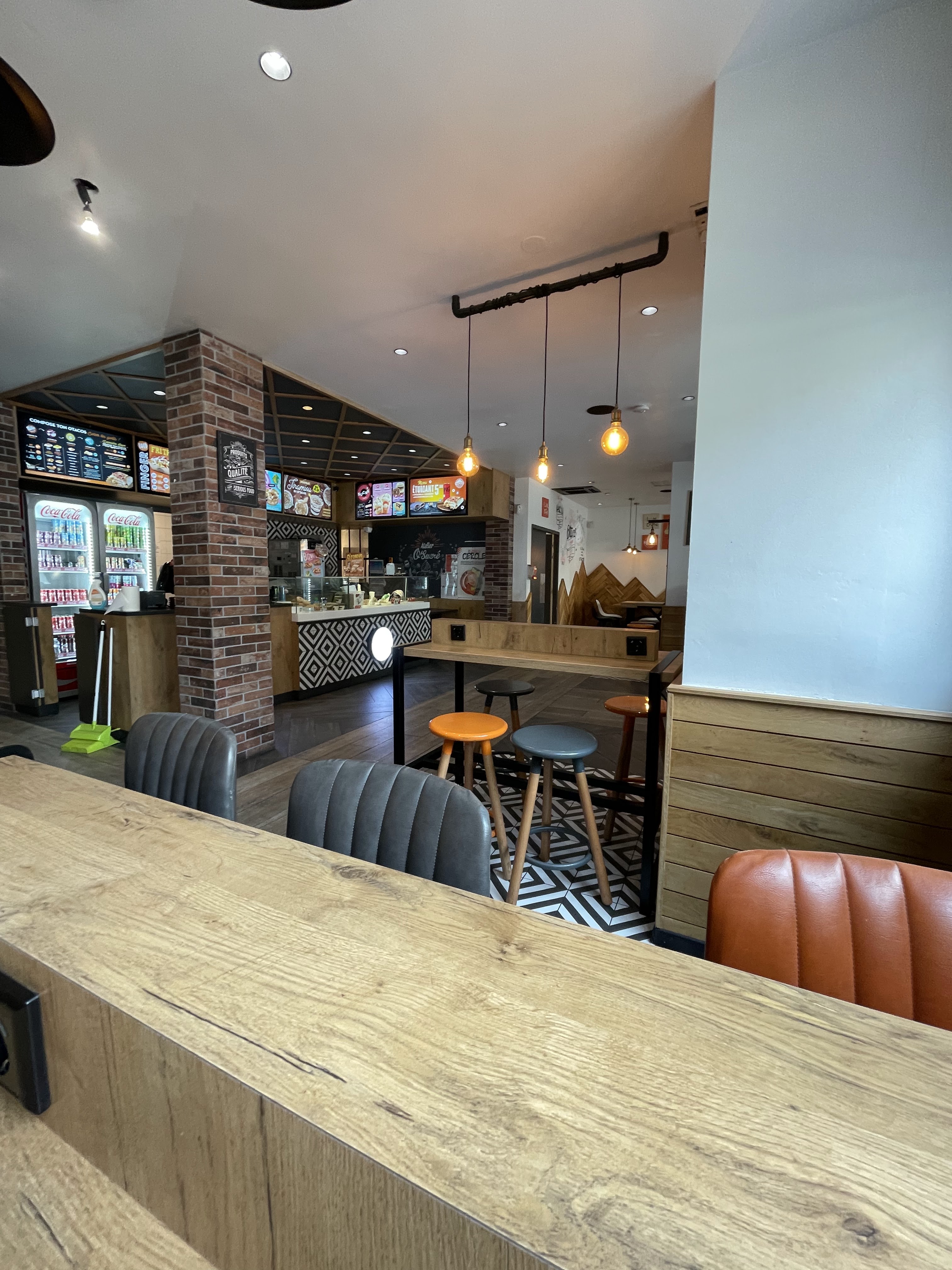 Espace convivial et accueillant. Le temps d’attente est respecter. Les tacos sont forcément bon si mon choix l’est aussi. L’equipe Est accueillante est très aimable. Directeur très gentil et à l’écoute. Je reviendrais.