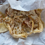 C'était absolument dégoûtant. Les « tacos » sont des sortes de burritos. Après avoir compris cela, j'ai choisi de commander des falafels comme garniture avec une sauce piquante… les « falafels » étaient un mélange de pommes de terre et peut-être 10 % de pois chiches au maximum, la sauce piquante était du ketchup avec une sorte d'épice dedans, le le fromage était hideux. En accompagnement, on m'a servi des frites avec du cheddar qui était absolument révoltant… masse chimique d'orange, masse friable de quelque chose d'indiscernable. Il fait la publicité de «tacos français originaux», rien n'est original, ce n'est pas du tout proche d'un taco, et rien n'est traditionnellement français! Pouces vers le bas. Sans conteste le pire «taco» que j'ai jamais connu. J'ai honte d'avoir mangé ça.