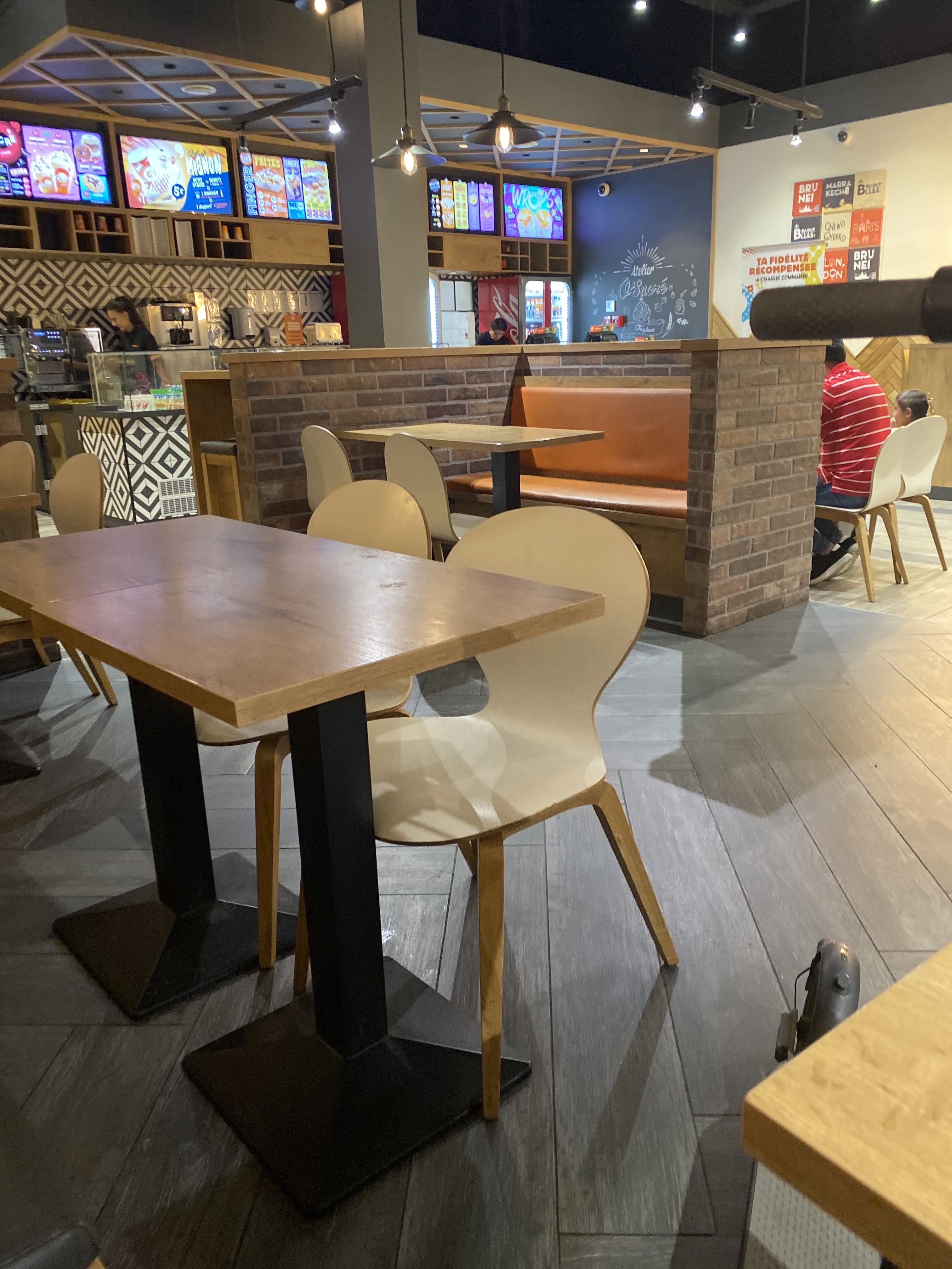 Le resto est vide, mais l’attente est longue pour 2 ridicules tacos et 1 menu enfant. Mon neveu a été surpris d’avoir mangé son tacos en 2 bouchées, les adultes n’en parlons pas nous avions fini par cuisiner autre chose et donner ma part car le petit avait encore faim. Je précise avoir commandé un taille L. Plus jamais …