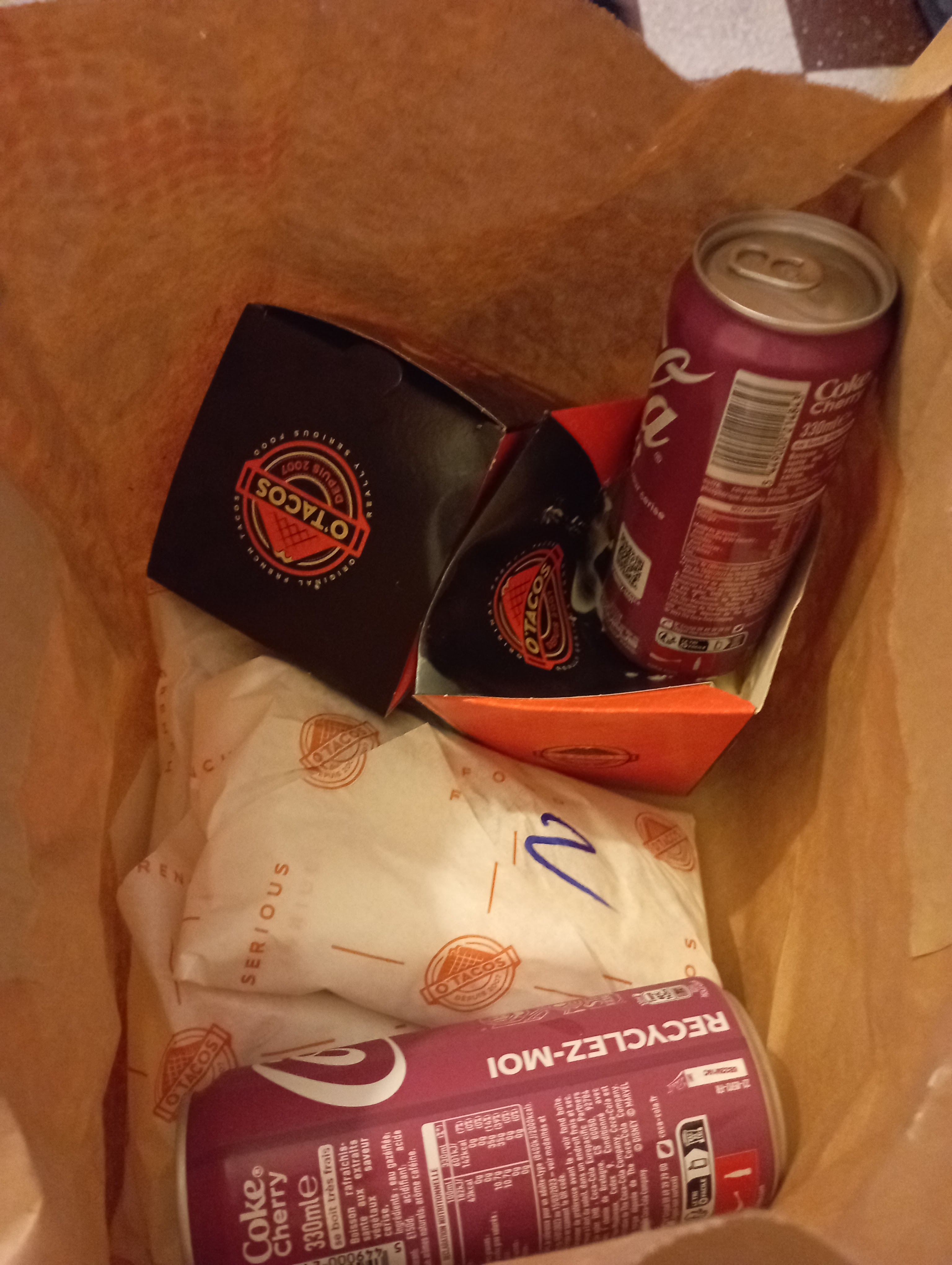 Dernière fois que je vais à O'Tacos, j'avoue que c'est relou d'attendre une commande à emporter et de découvrir chez soi que la commande n'est pas la bonne. Je veux bien croire que c'est dur en fin de journée mais il faut vraiment faire attention avec les commandes, j'avais commandé avec mayo, je me suis retrouvé avec de la sauce piquante...