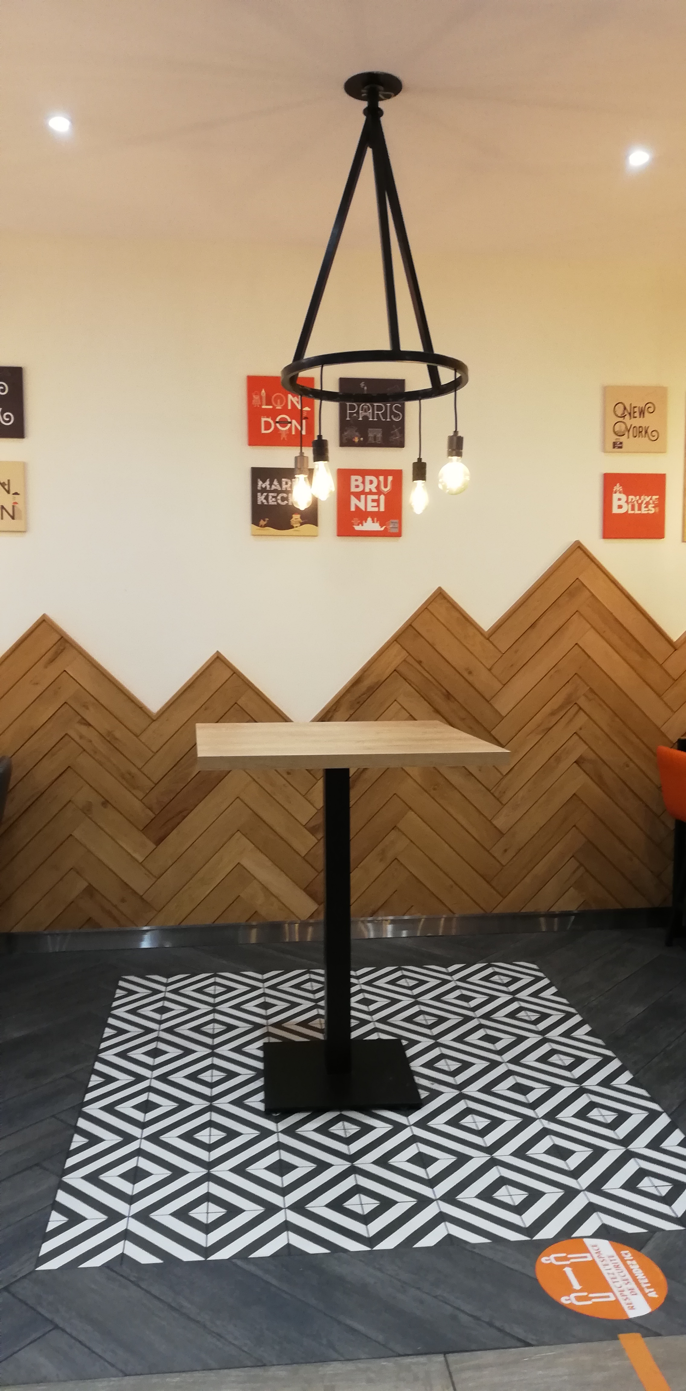 Frites froides dans tacos..café expresso ridicule 1.40 un fond de café..serviettes de table au comptoir tombées par terre par un client remis à disposition...même pas protégés dans un distributeur, ambiance bruyante avec les sonneries pour rechercher sa commande. Bref,première et dernière fois!😱
