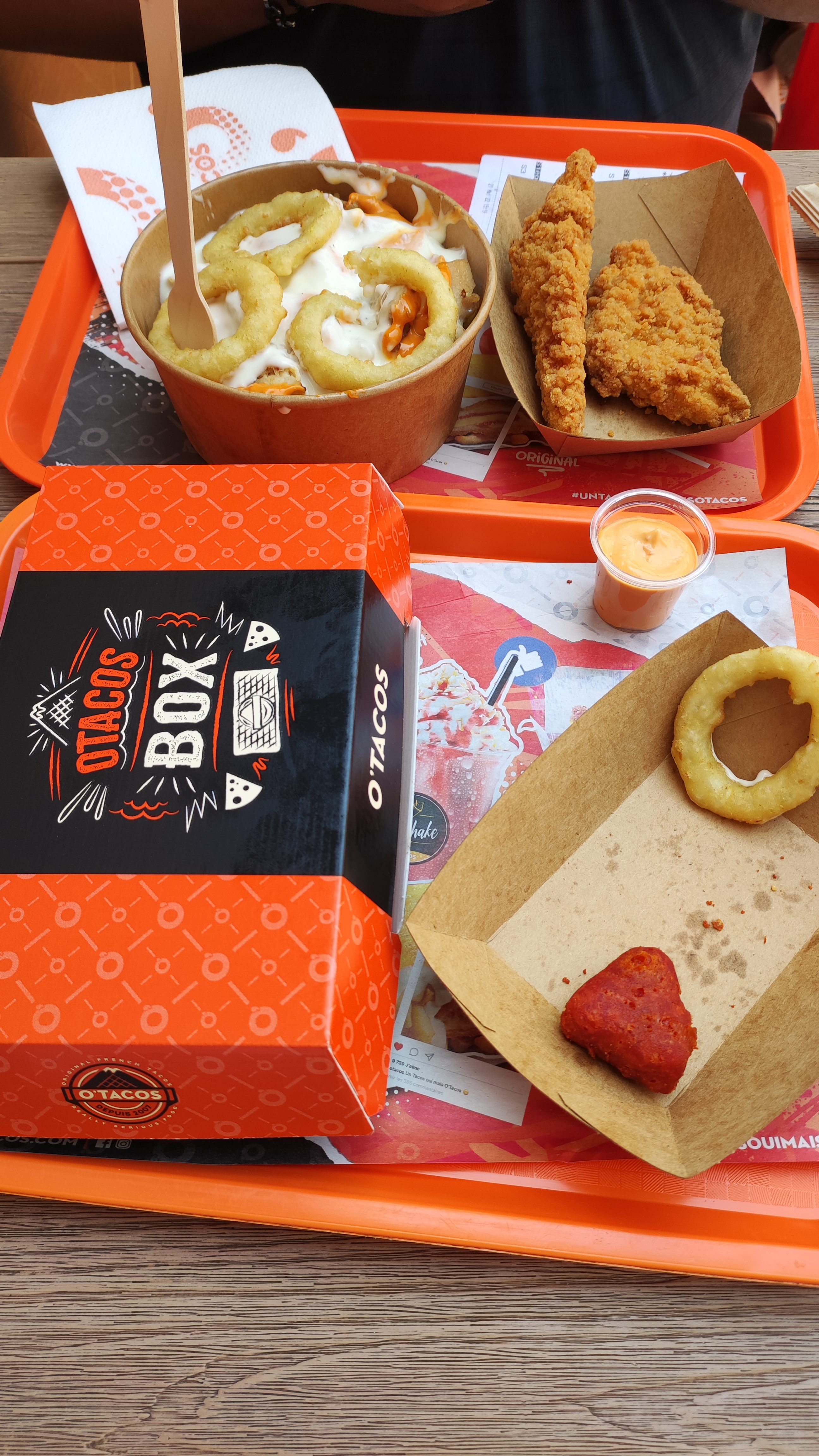 Arrivés à 6 dont 4 personnes pour une première fois. Plus jamais on retournera dans cette enseigne. 37mn pour être servis et pour manger dehors. Heureusement le groupe initial c'était scindé en 2 sinon ils auraient été en panique. Bref après ça. Des oublies sur la commande. Et il y a fallu que la personne au comptoir vérifie ainsi que sa cuisinière qui ne l'a même pas cru. Une étoile juste pour les fournisseurs qui doivent se dire qu'ils perdent leur temps dans cette enseigne resto rapide. Ce O'tacos, c'est pas O'taquet.