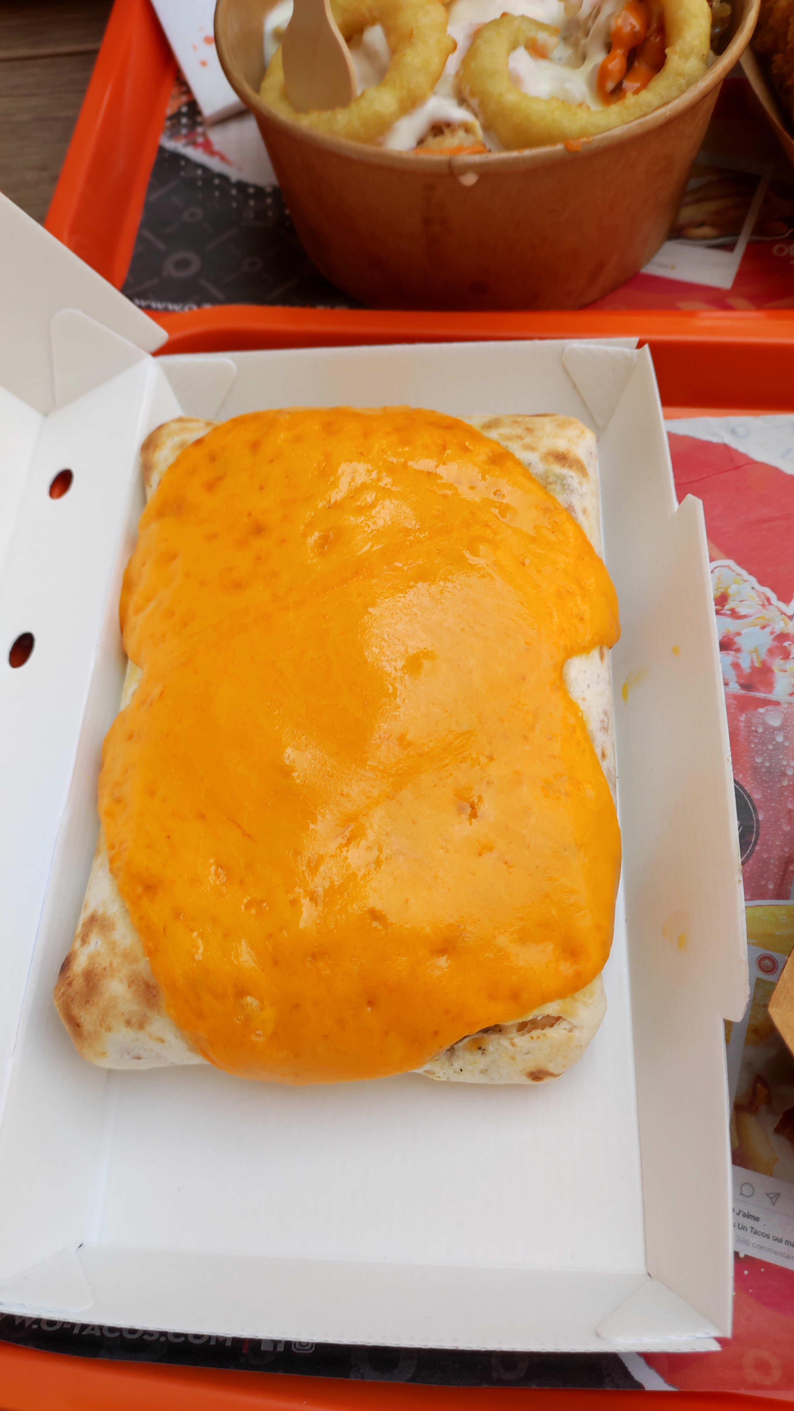 c'est de pire en pire ce o'tacos la première fois on me sert un donut's périmé et la deuxième fois des oignons noir cramé carbonisé j'ai le gout du charbon dans la bouche. et une sauce fromagère à l'eau tout sa pour payer un tacos taille M avec uber eat à 20e a croire que le tacos est fabriquer en or
