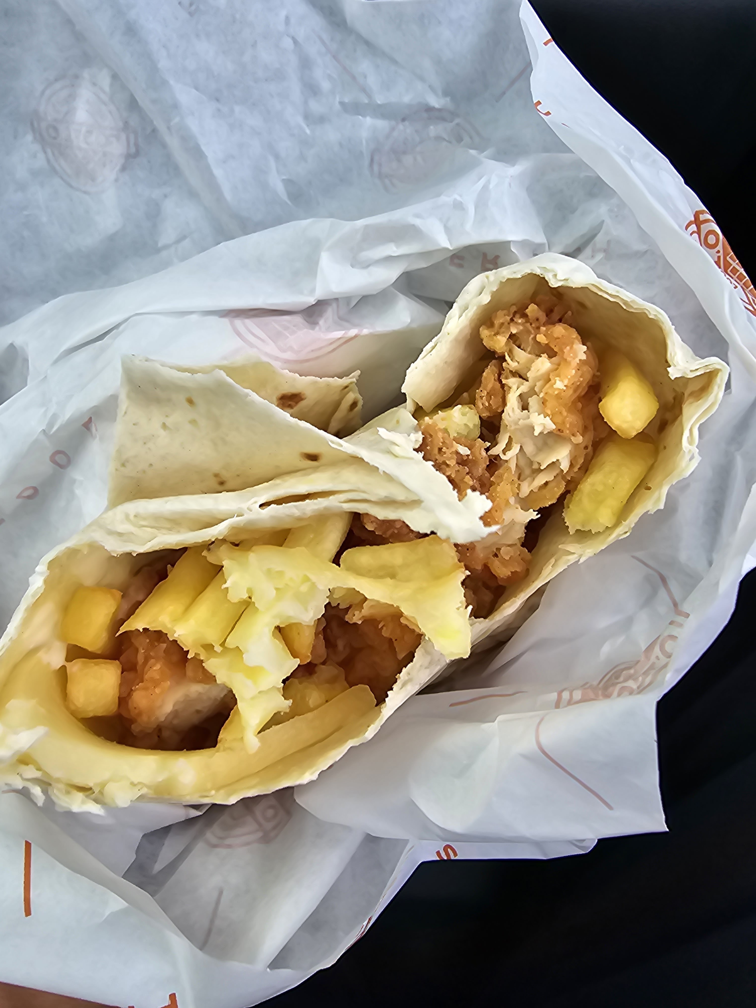 Erreur dans ma commande (sans frite a l'intérieur) sinon impeccable 👍. C'est pas un délice mais ça passe bien. Je recommande par contre insister sur la précision de votre commande. Exemple sans frite 😝