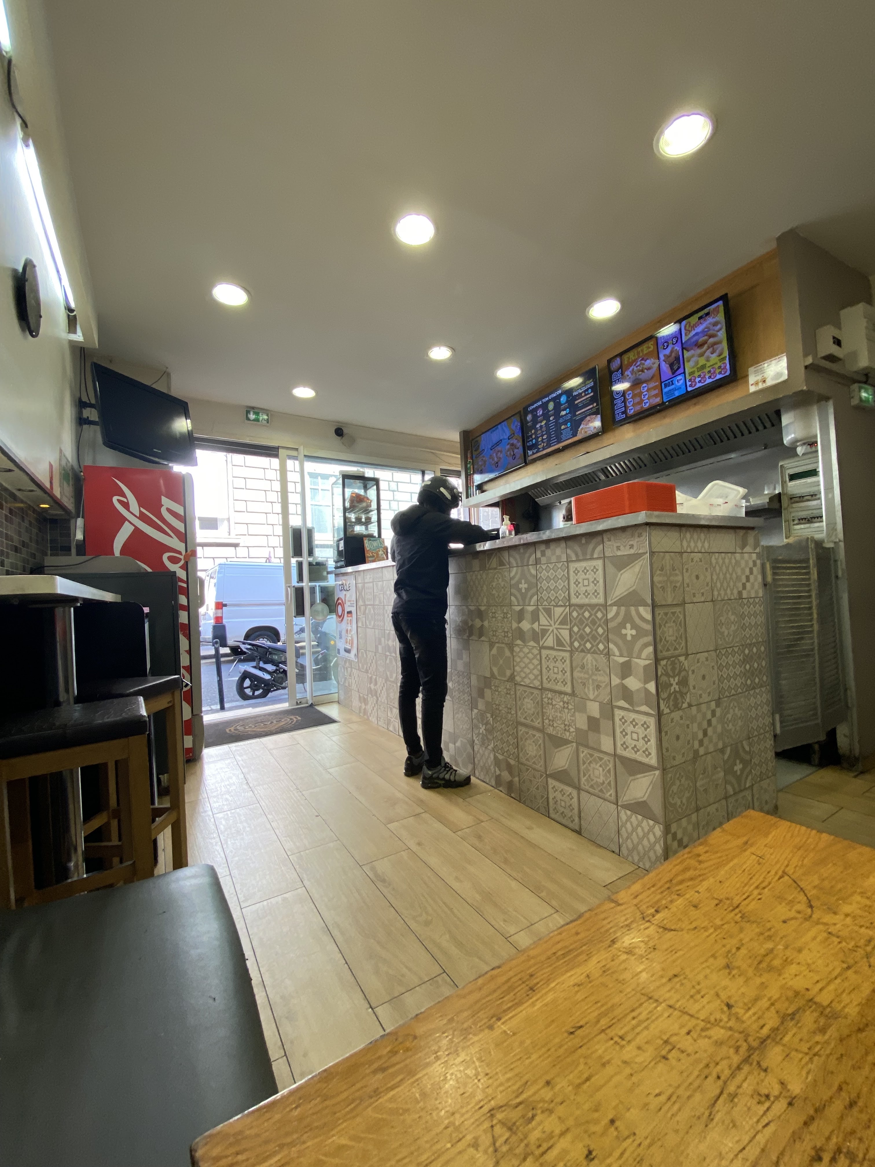 Endroit excentré , ruelle sombre , boutique minuscule et personnel qui ne parle limite pas le français , après j'ai pas du tout aimé le tacos mais ça ça reste subjectif quoi ! On aime le concept ou pas !