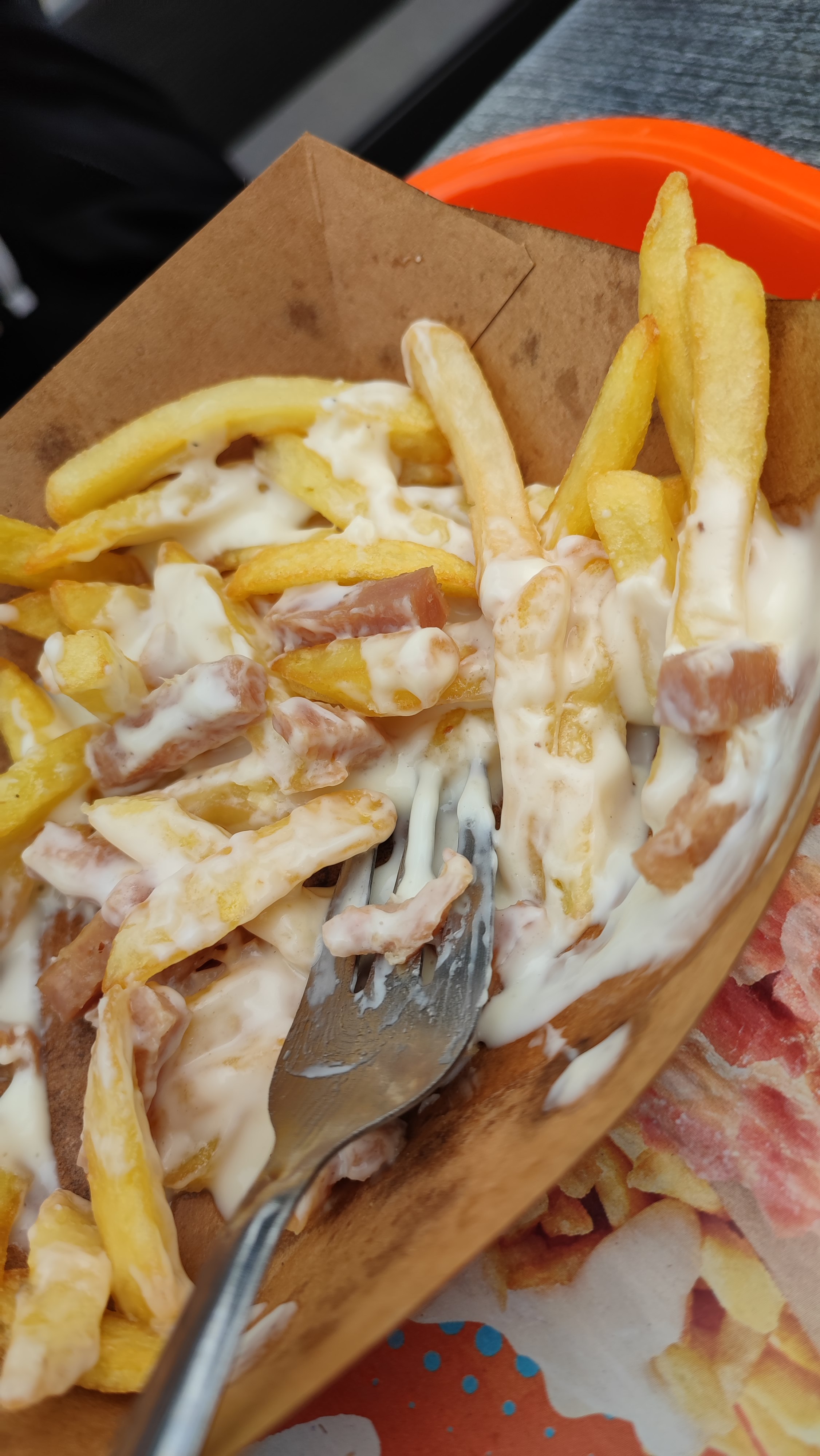 Les tacos ne sont parfois pas terribles, frites sauce fromage et avec lardons grillés, les lardons étaient à peine cuit