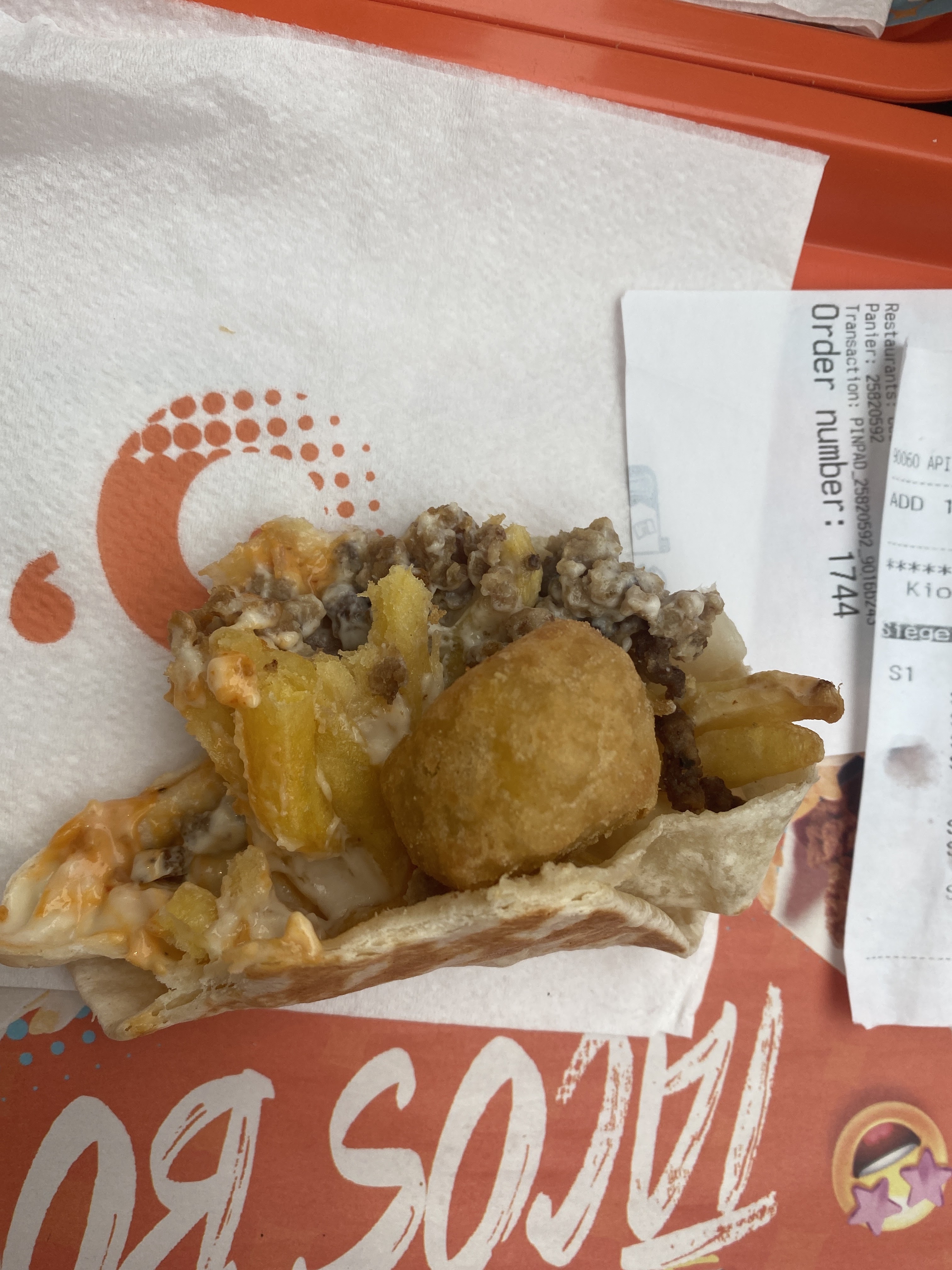 Décevant! Un tacos rempli de frite, une garniture et une sauce fromagère inexistante. Pour une ouverture récente, vraiment déçu.