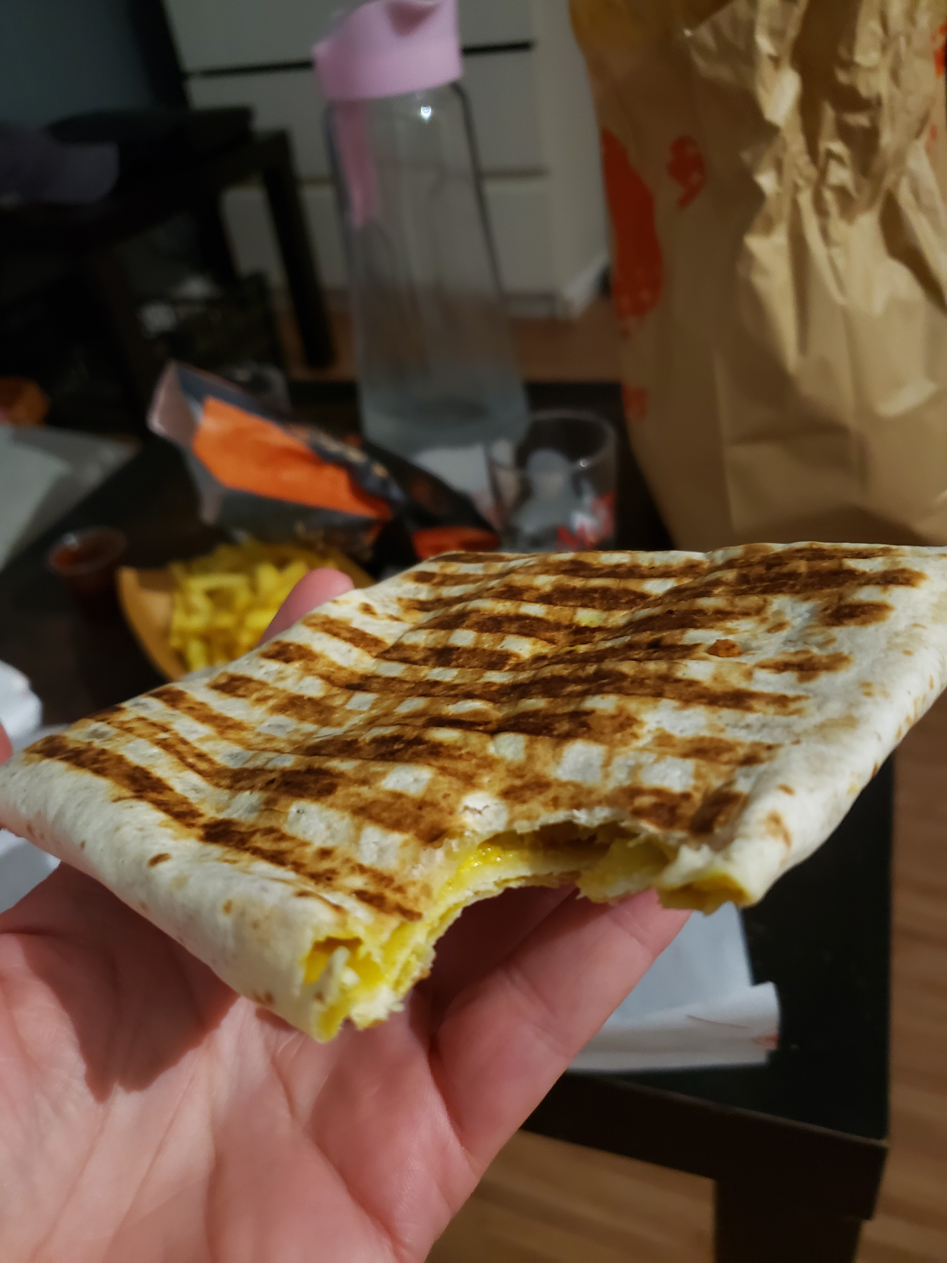 On a commander un tacos et un bolws avec mon chéri en 3 minutes c’était prêt, le bowls et le tacos étais geler mon chéri a demander à réchauffer il l’on réchauffer 30 secondes le au dessus étais chaud mais dessous c’était congeler, a fuir !!