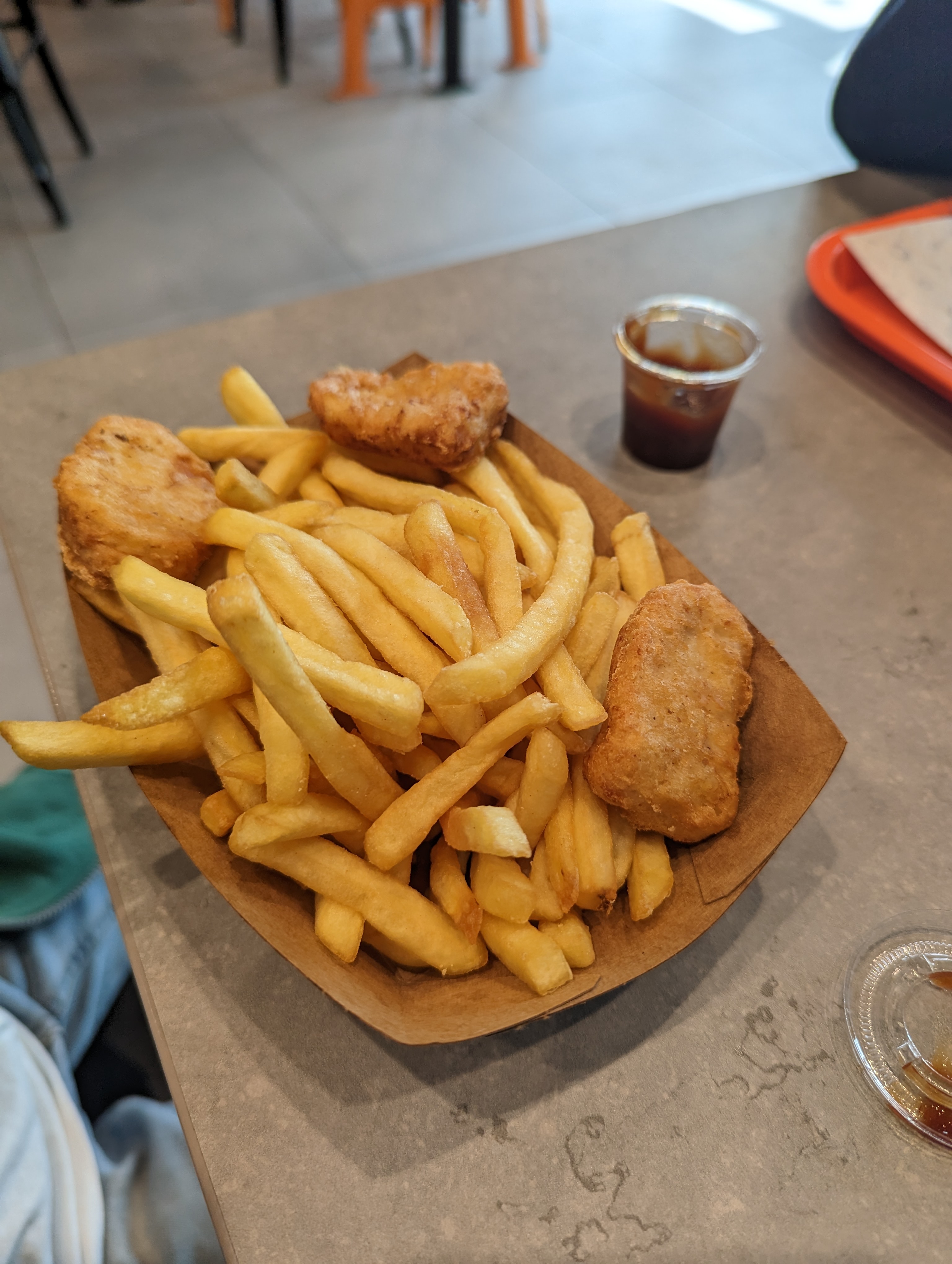 Malheureusement nous sommes passez à un moment de rush donc pas mal d'attente mais cependant les employés sont adorables et se sont excusé à plusieurs reprises. Mention spéciale pour leurs nuggets ce sont les meilleures que j'ai mangé 👍