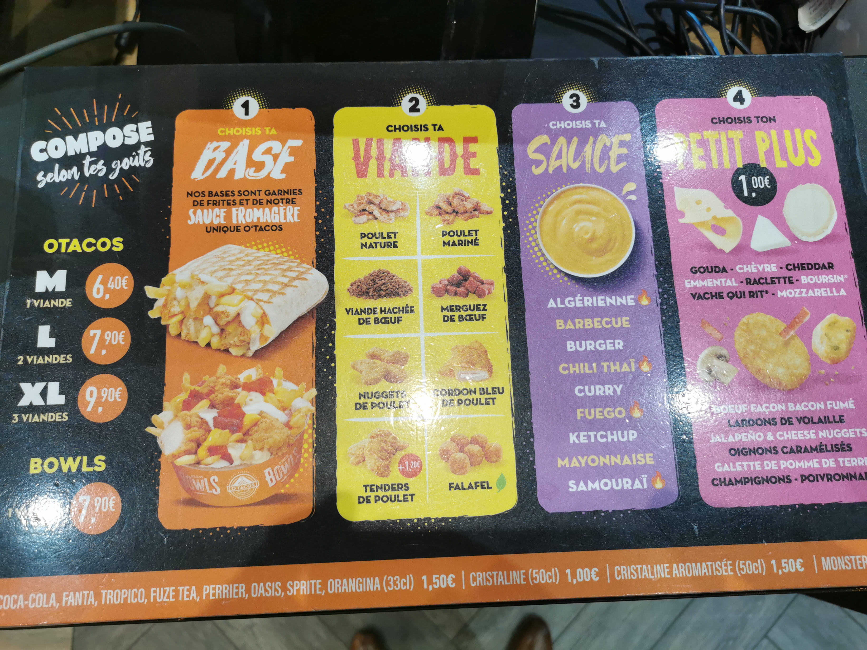 Il arrive souvent de me rendre à ce otacos le service est rapide et efficace les tacos sont bons et les employés sympathique 👍 parcontre des menus serait la bienvenue 👀