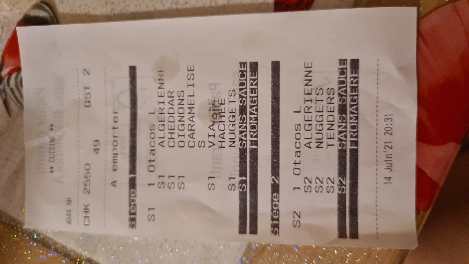 Les tacos auraient pu être meilleurs. Malheureusement mon conjoint et moi avons été malade comme pas possible pendant 2j. Cependant commande rapide.