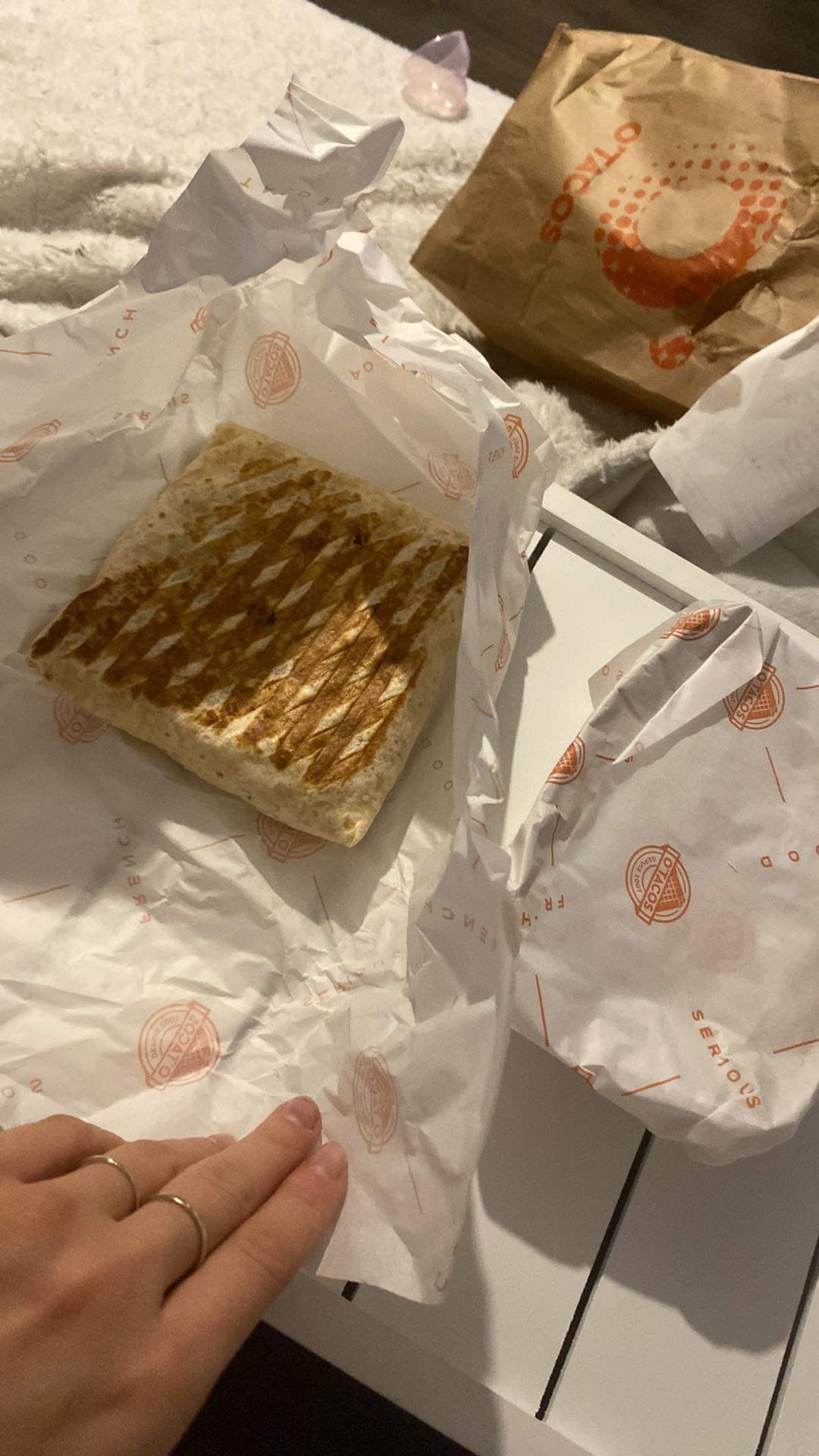 Bonjour , déçue . J’ai pris à emporter pour une fois , les chiffres sur les paquets illisibles se qui fait qu’on a tous goûter le tacos des autres . La caissière pas souriante et la collègue a sortie les poubelles puis à mis les tacos dans le sachet de transport sans se laver ou désinfecter les mains . Et les tacos n était pas emballer pour l emporter donc ils sont rester à l’air libre 5 minutes avant qu’on signale en cuisine que c’était de l emporter . Bref