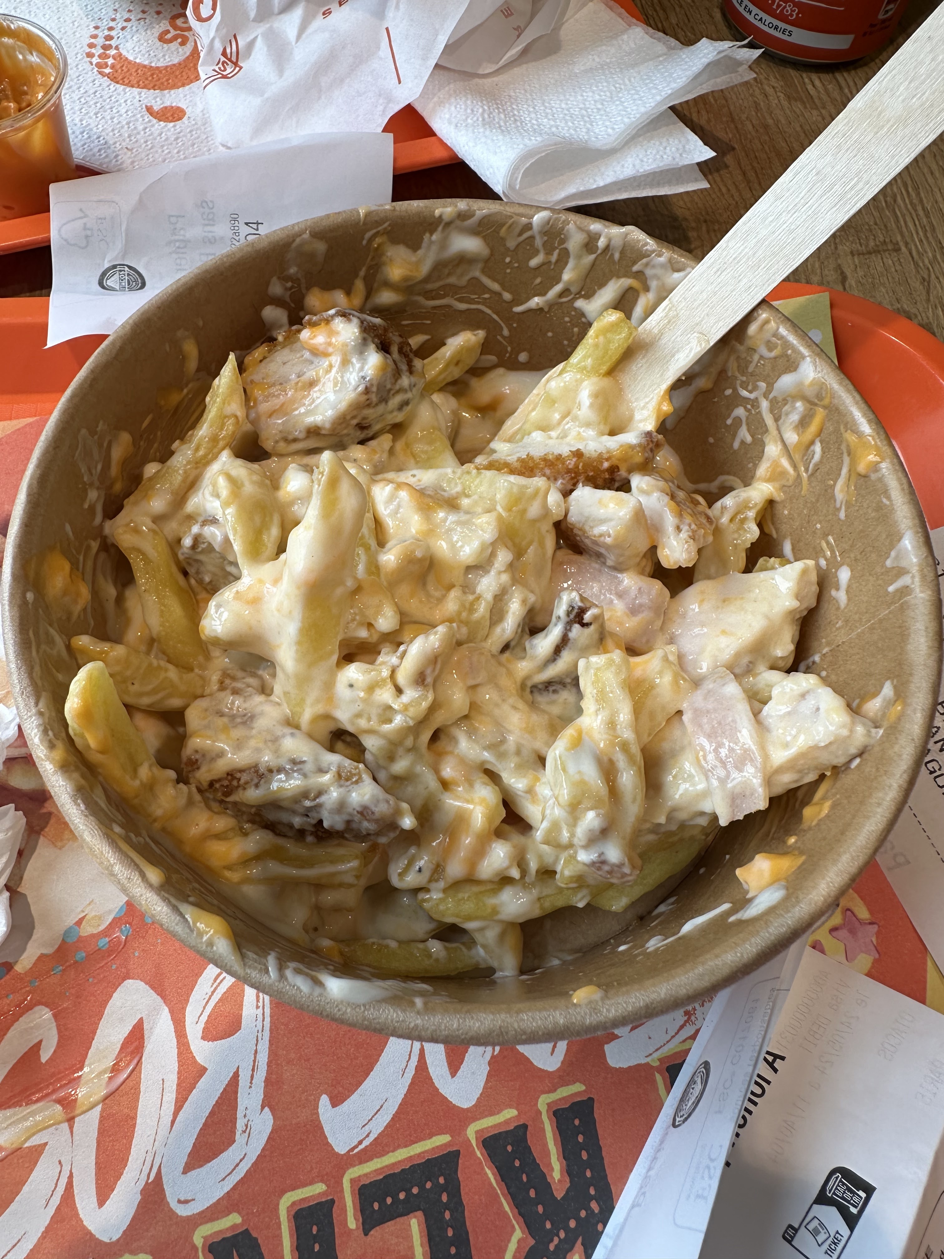 En livraison, c’est un concept quand même de penser à mettre les sauces pour les frites mais pas les frites elles mêmes…
