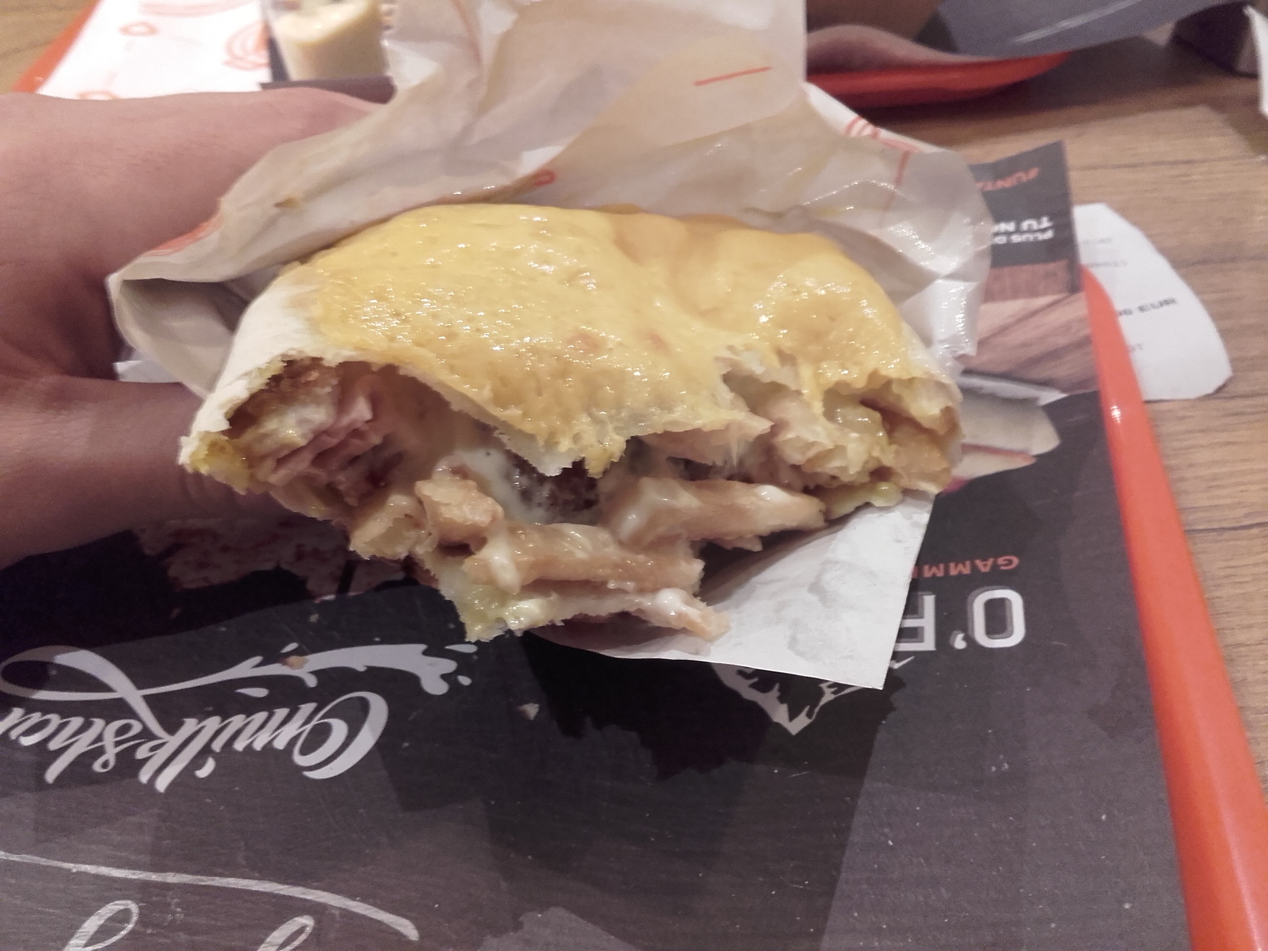 C'est gras,les frites sont très molle, mêmes les sauces n'avait pas de goût,les viandes ne sont pas bien cuit et n'ont pas de saveurs,le tacos n'est pas chaud, les chikens baigne dans l huile conseil manger plutôt un bon Tacos dans un kebap .