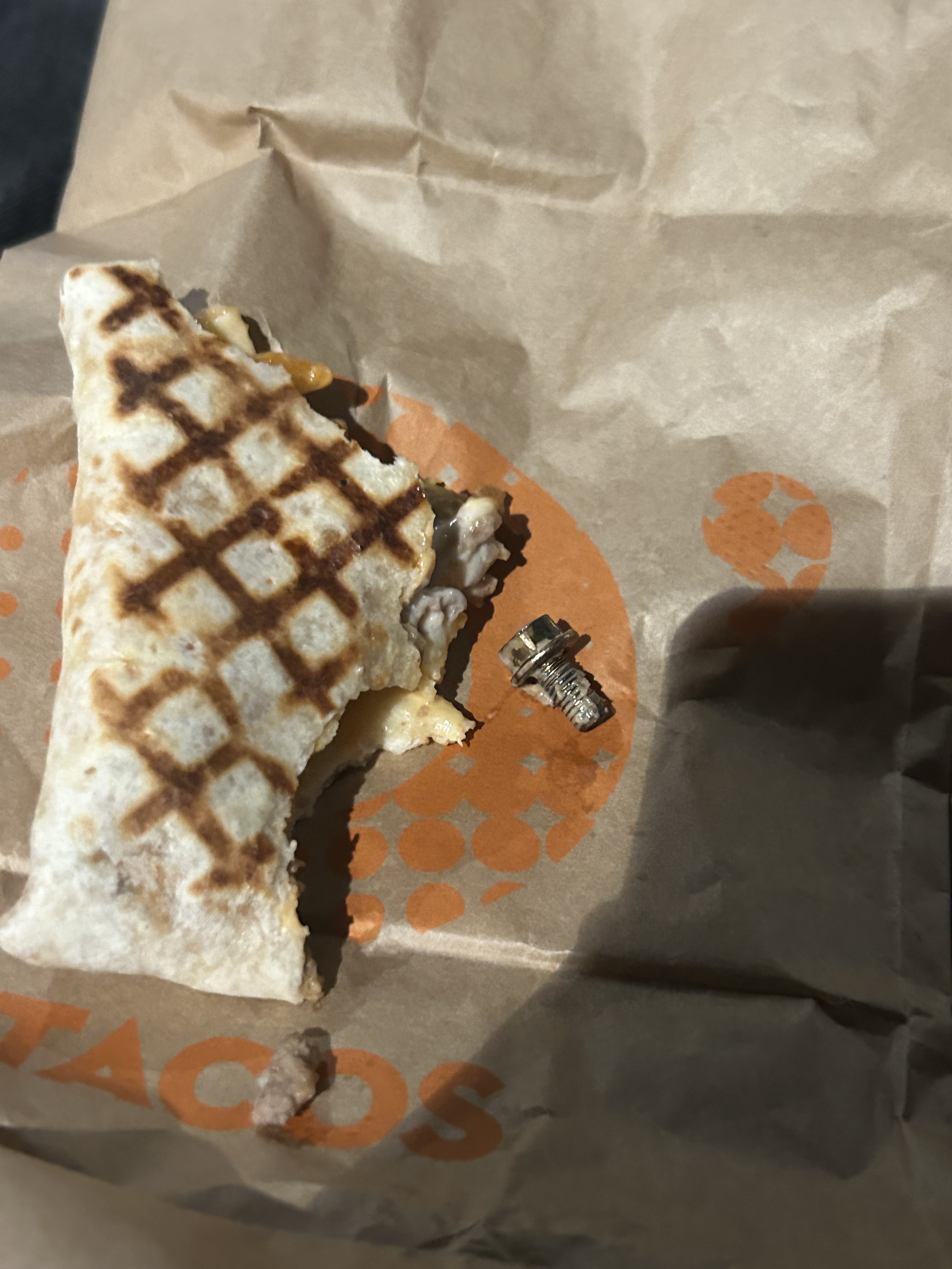 Morceau de plastique retrouvé dans le tacos, une honte.